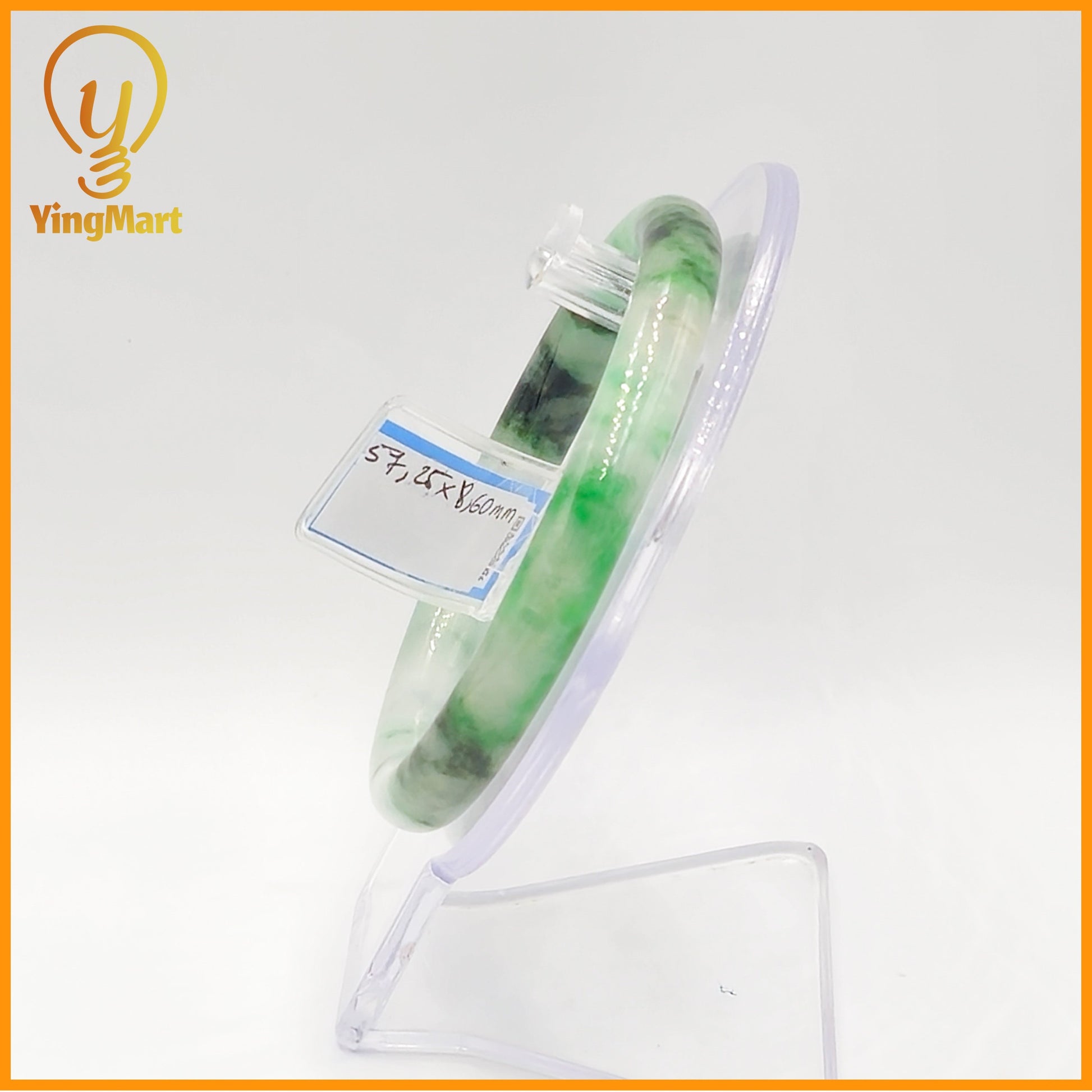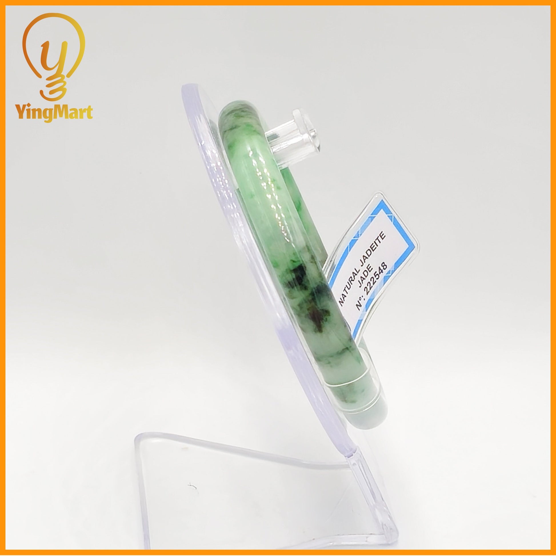 YingCollection 57mm PNJ Certified Natural Color Green With Black Brown Spot Jadeite Jade Bangle Bracelet, Real Gemstone, Jewelry