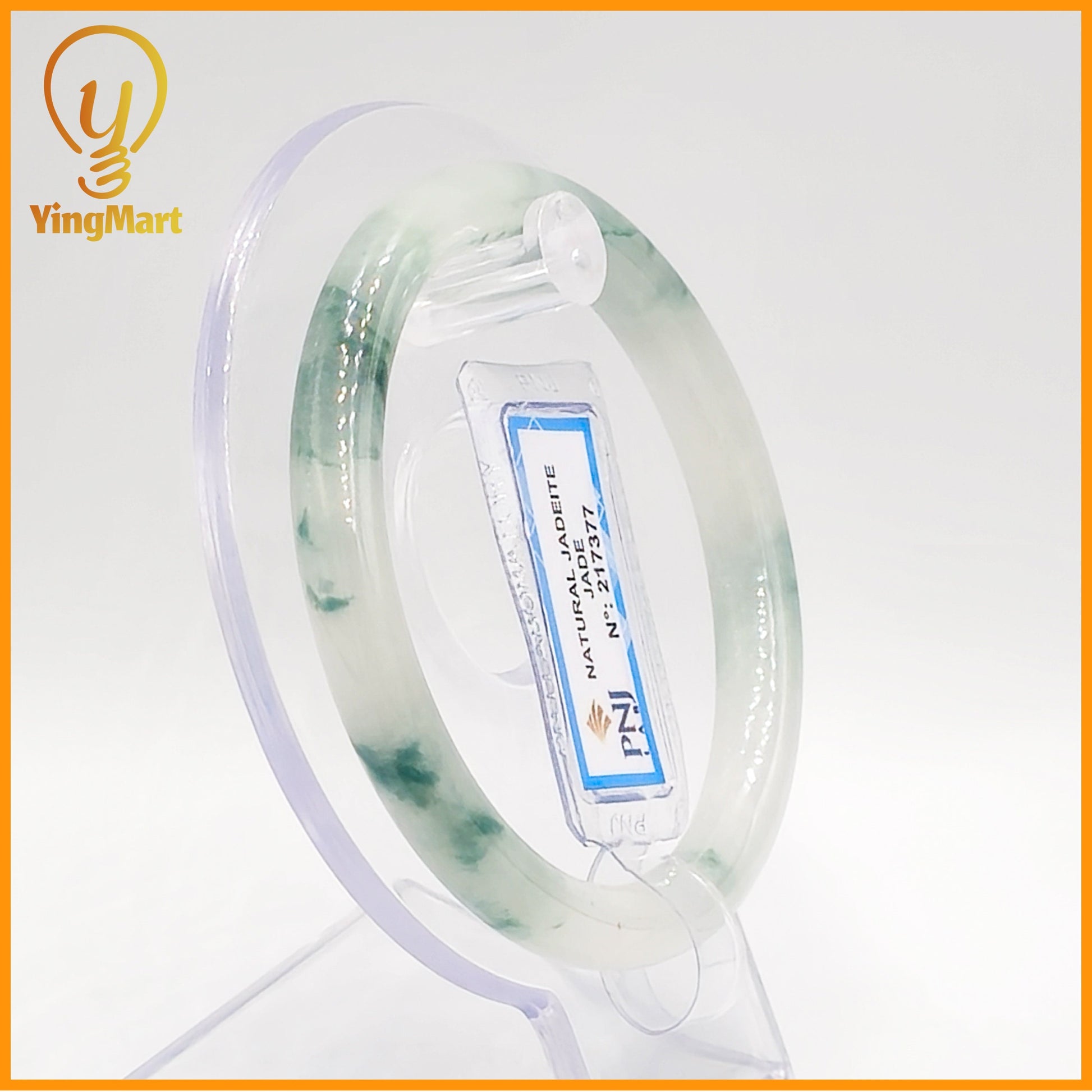 YingCollection 57mm PNJ Certified Natural Color Green With Black Brown Spot Jadeite Jade Bangle Bracelet, Real Gemstone, Jewelry