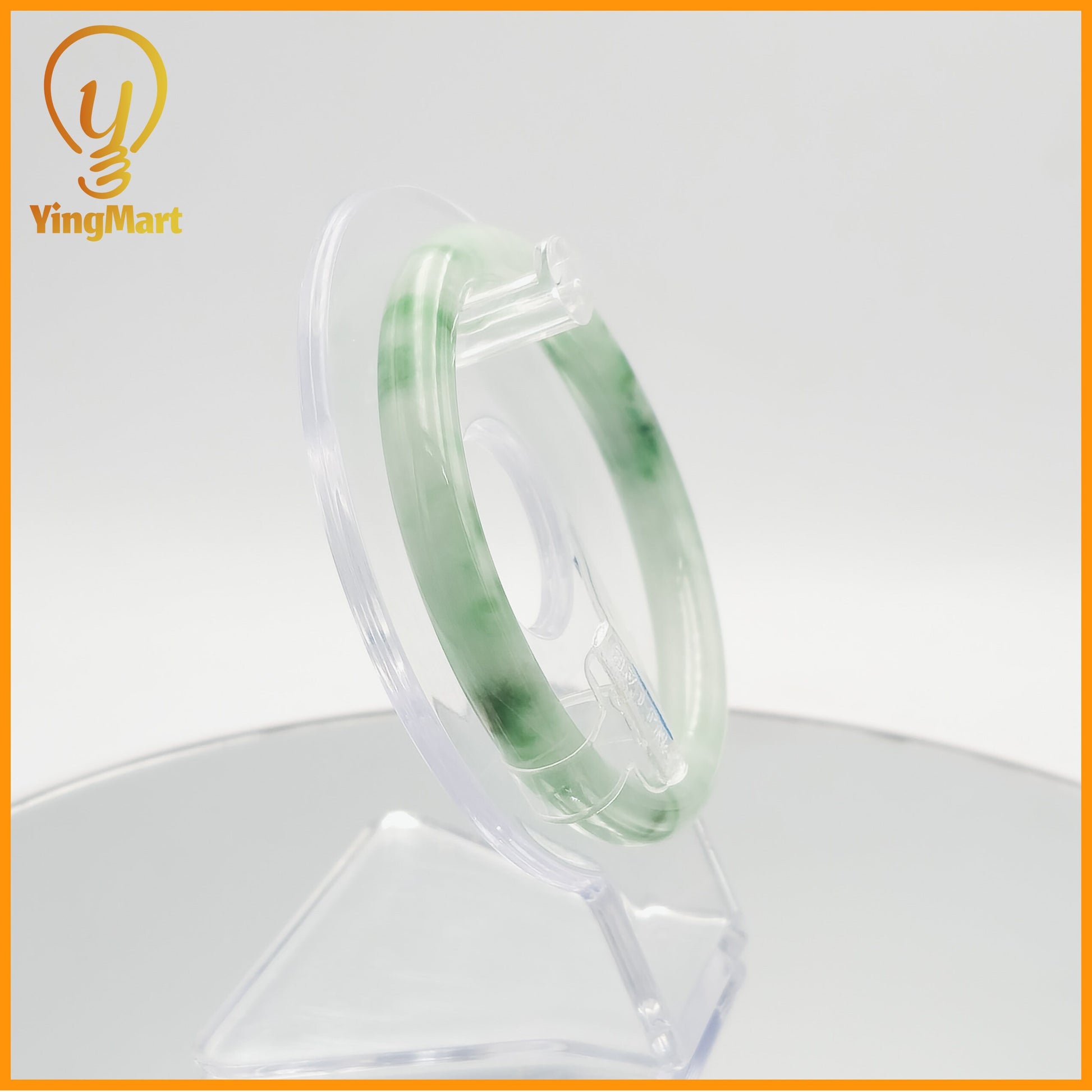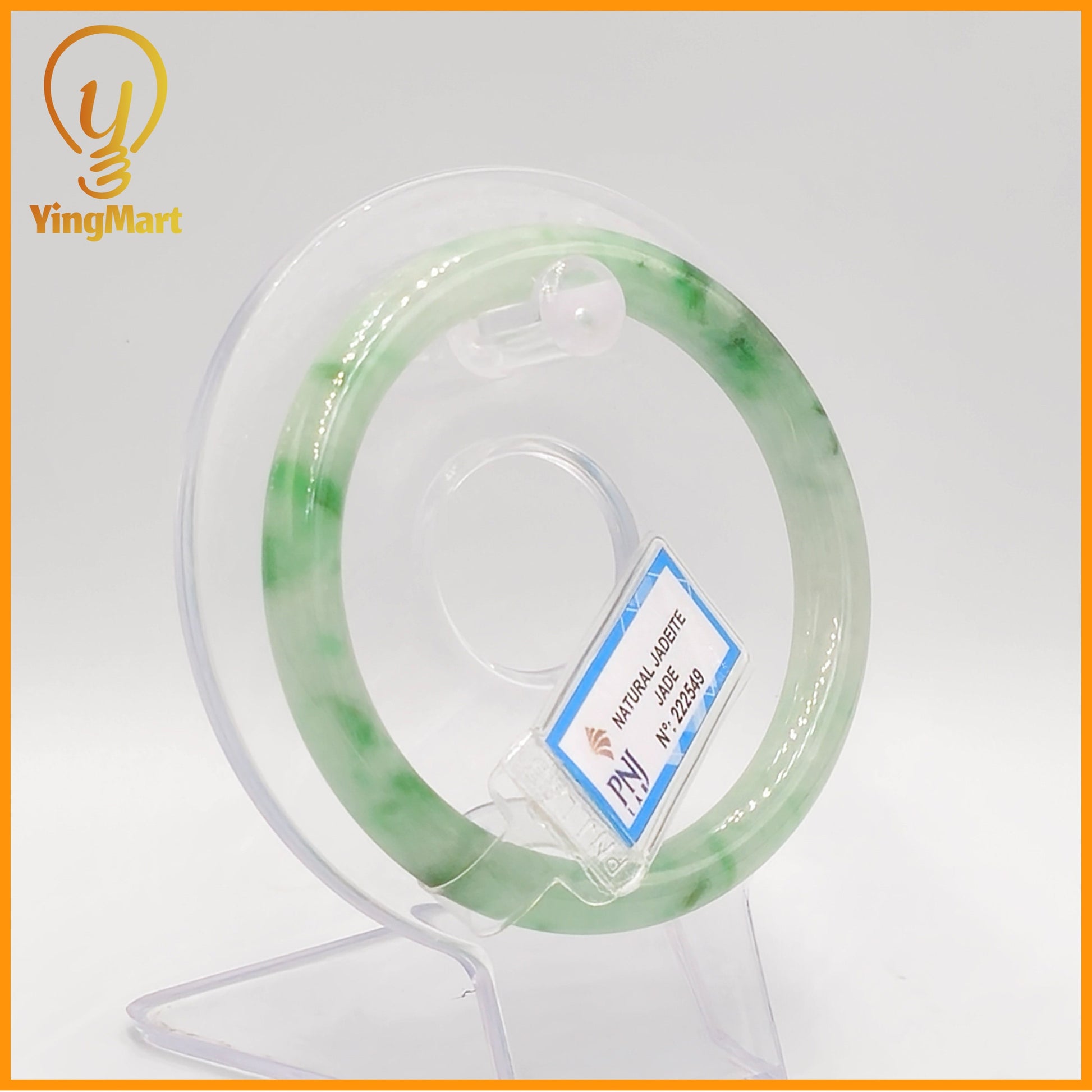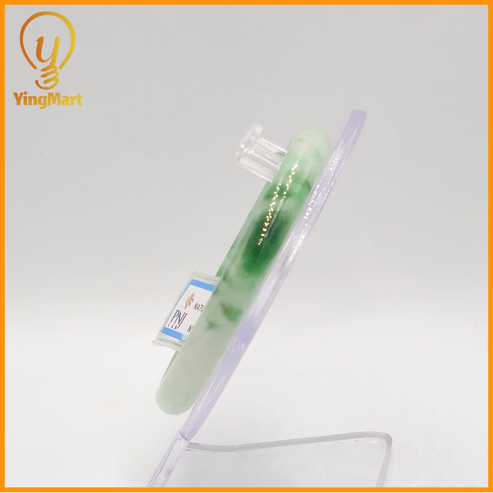 YingCollection 57mm PNJ Certified Natural Color Green With Black Brown Spot Jadeite Jade Bangle Bracelet, Real Gemstone, Jewelry