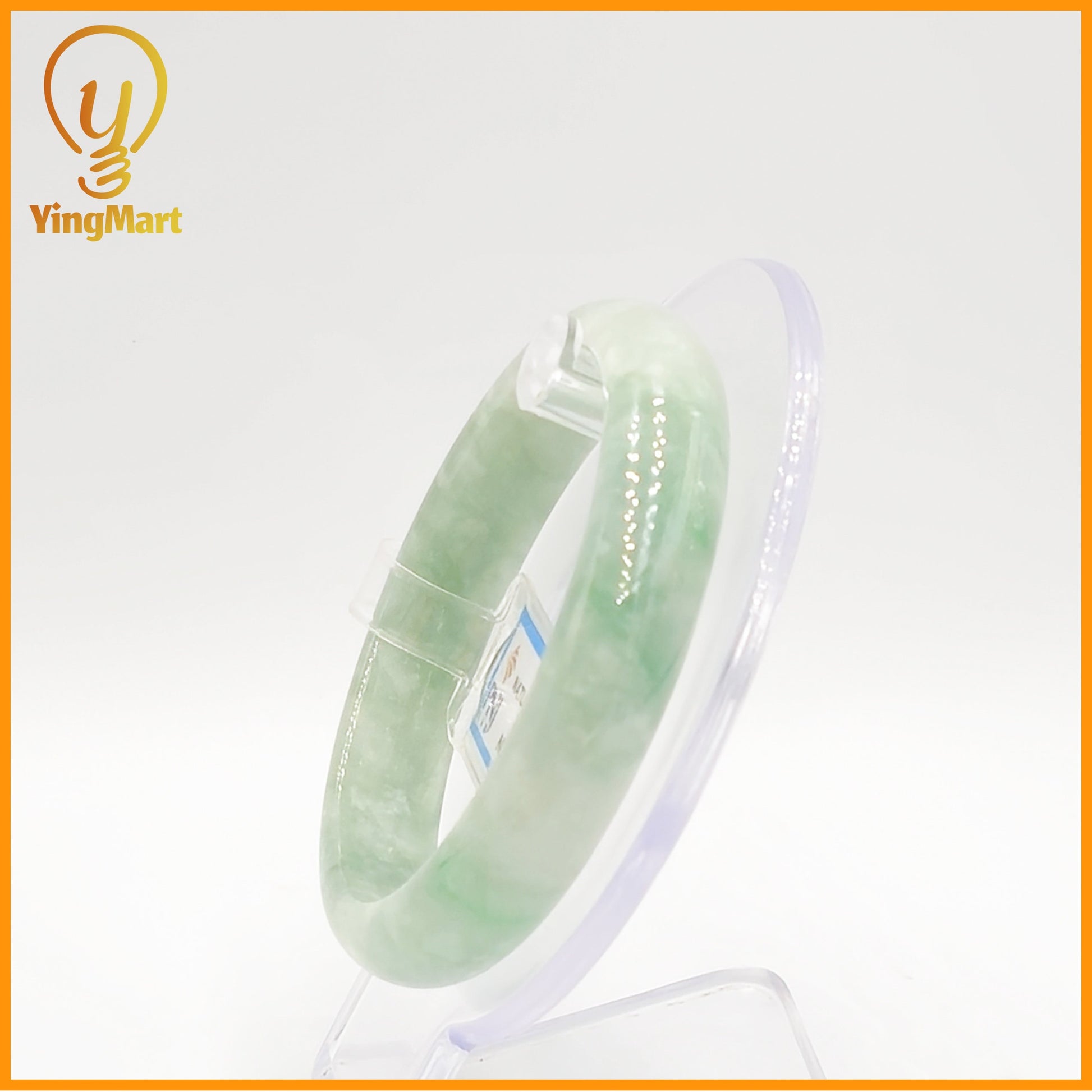 YingCollection 57mm PNJ Certified Natural Color Green With Black Brown Spot Jadeite Jade Bangle Bracelet, Real Gemstone, Jewelry
