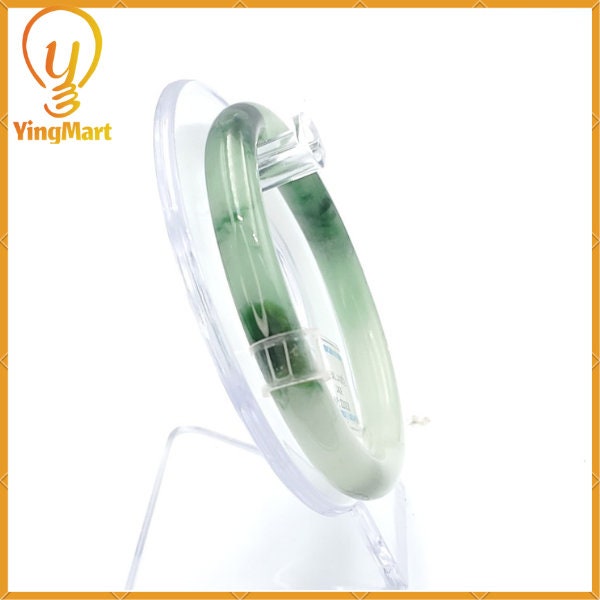 YingCollection 59mm PNJ220838 Certified Natural Color Green With Black Brown Spot Jadeite Jade Bangle Bracelet, Real Gemstone, Jewelry