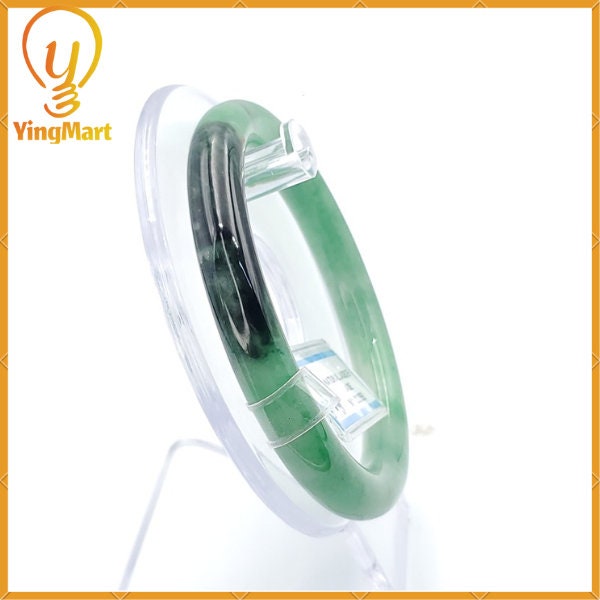 YingCollection 59mm PNJ222555 Certified Natural Color Green With Black Brown Spot Jadeite Jade Bangle Bracelet, Real Gemstone, Jewelry