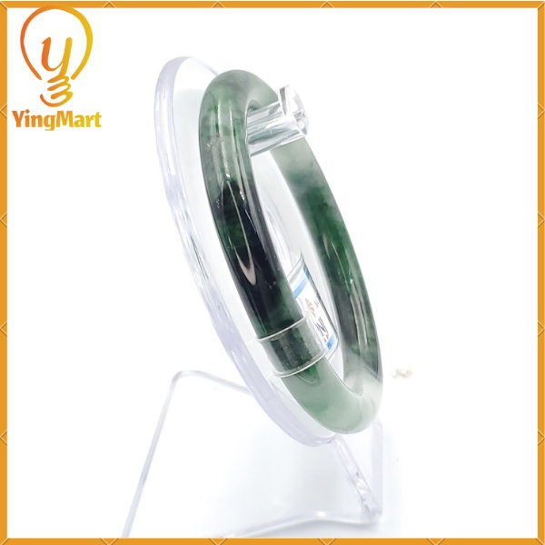 YingCollection 59mm PNJ222556 Certified Natural Color Green With Black Brown Spot Jadeite Jade Bangle Bracelet, Real Gemstone, Jewelry
