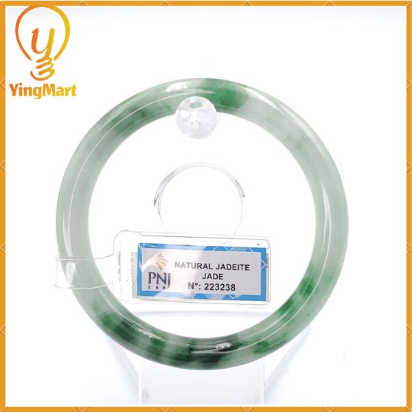 YingCollection 59mm PNJ223238 Certified Natural Color Green With Black Brown Spot Jadeite Jade Bangle Bracelet, Real Gemstone, Jewelry