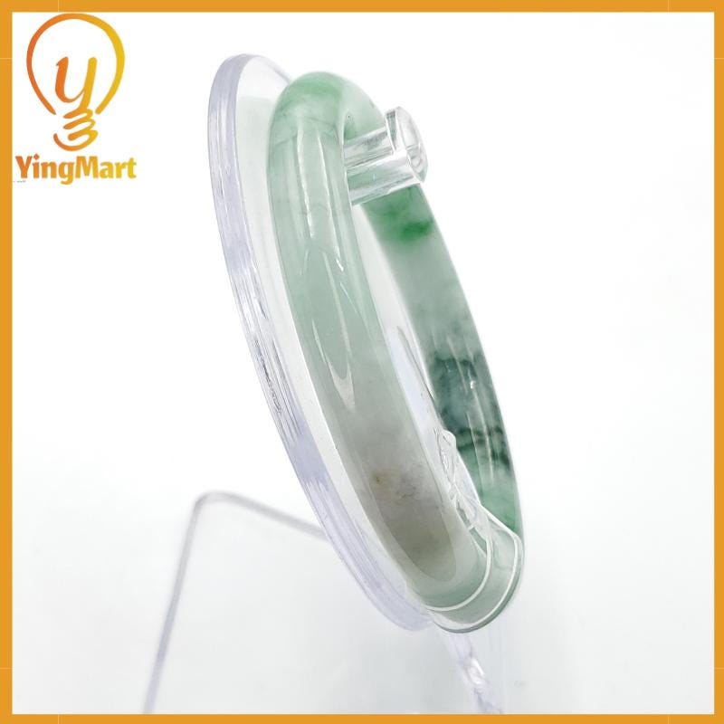 YingCollection 59mm PNJ260823 Certified Natural Color Green With Black Brown Spot Jadeite Jade Bangle Bracelet, Real Gemstone, Jewelry