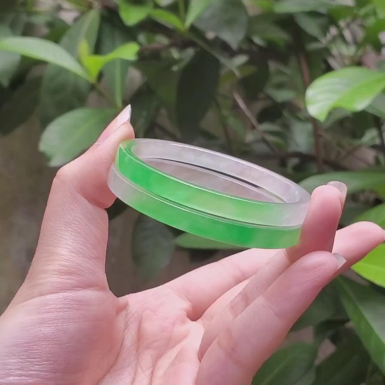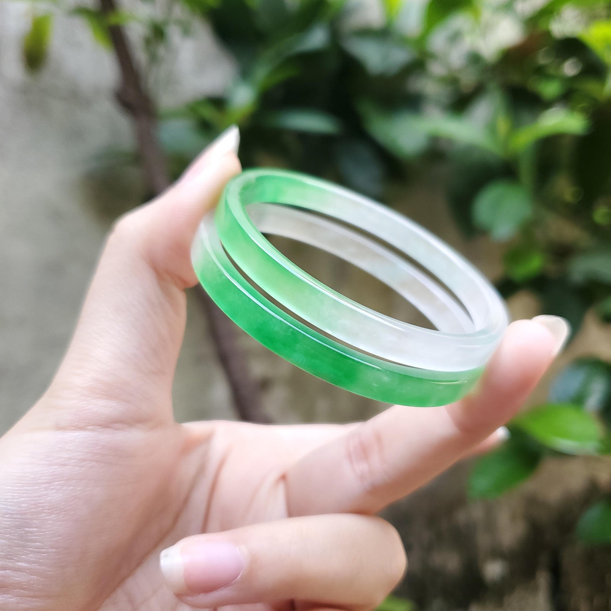 π Timeless Vintage Elegance: High Quality White Green jade bangle symbolising wealth, health & prosperity.