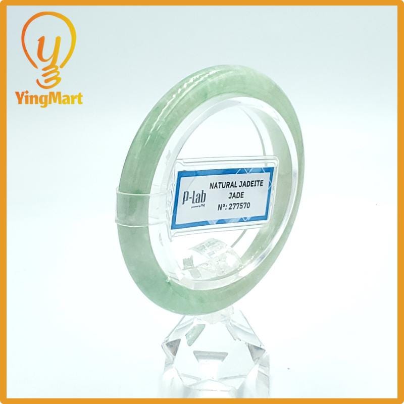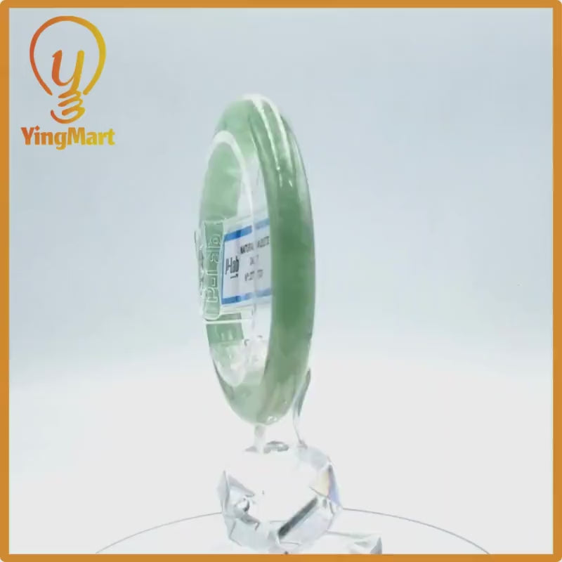 Yingmart 48mm PNJ Certified Natural Color Grey White Natural Jadeite Jade Bangle Bracelet, Real Gemstone, Gift for Her Mom Grandma Sister