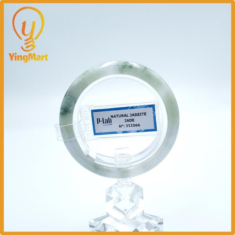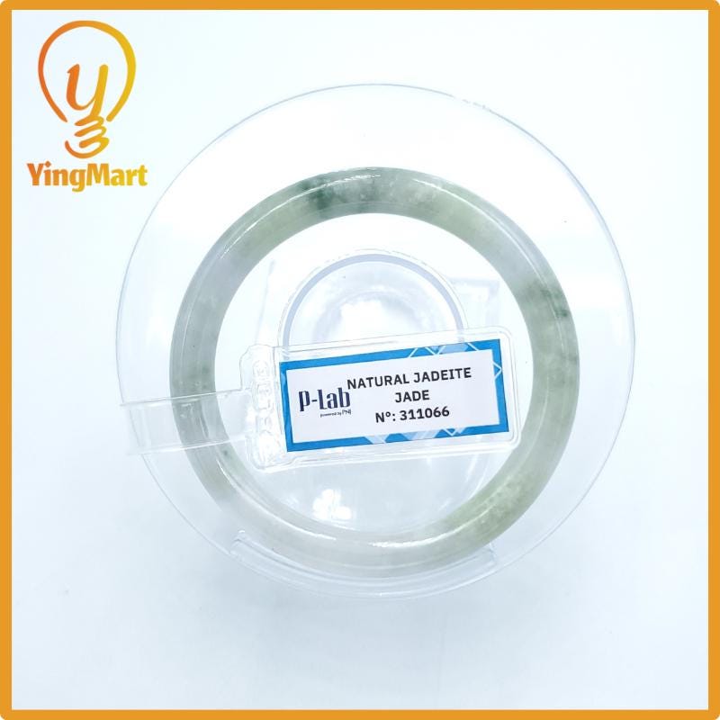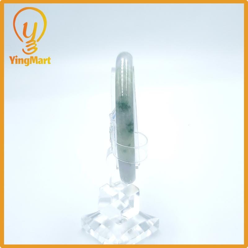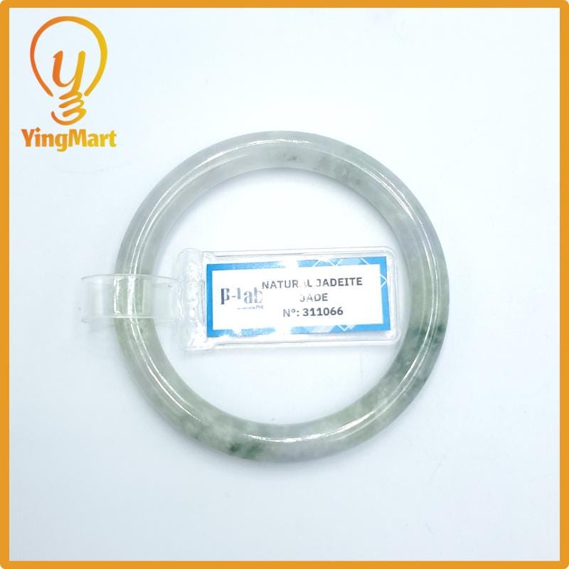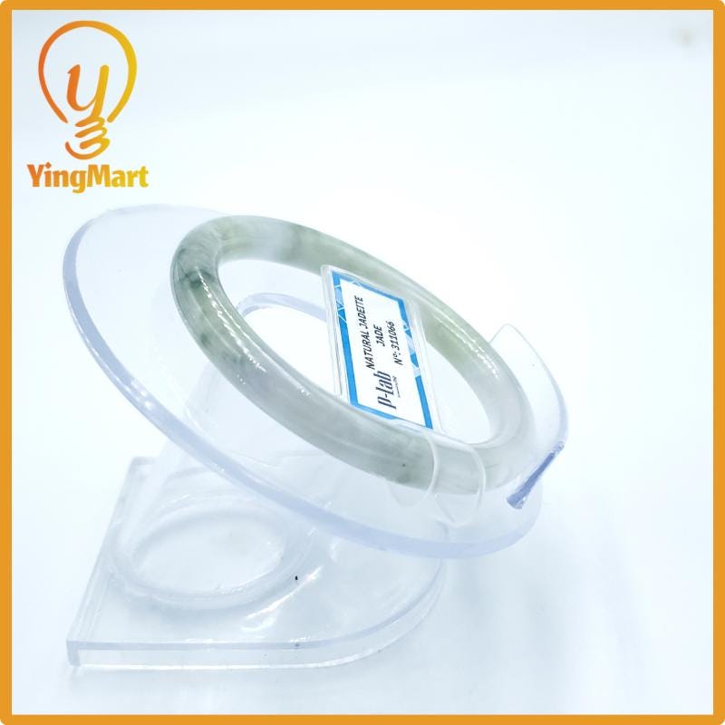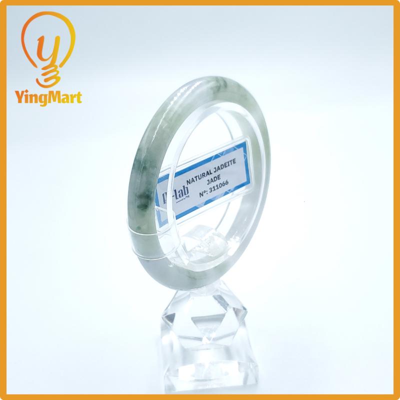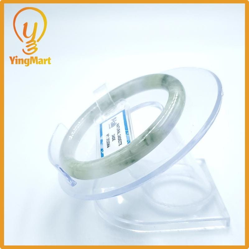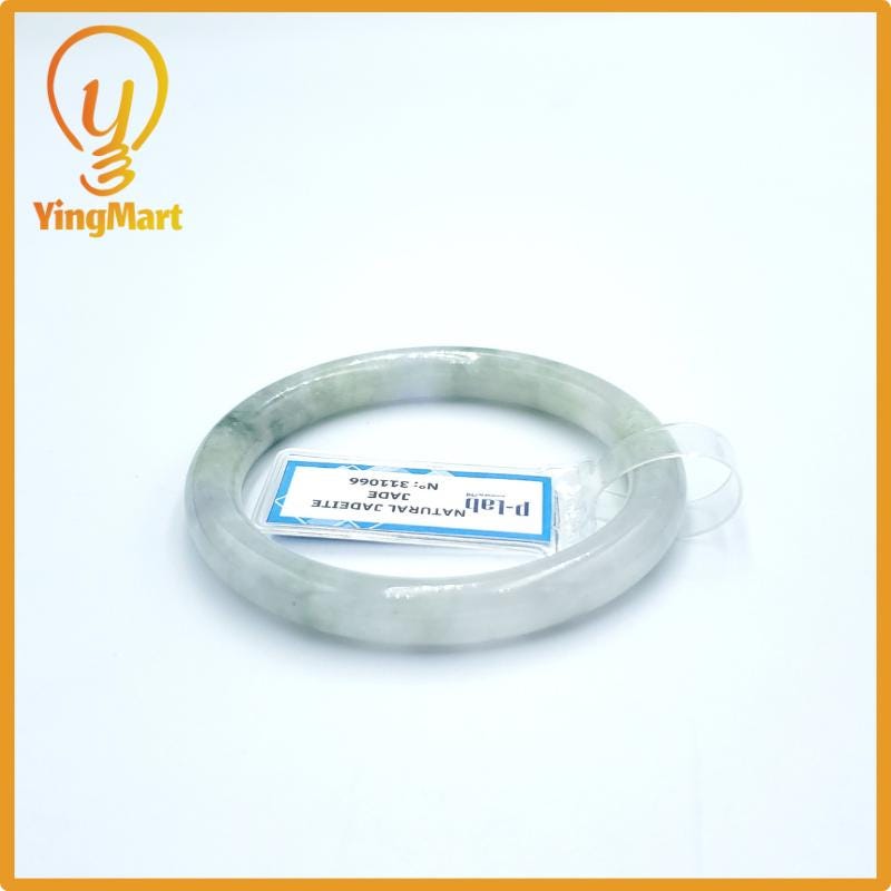 Yingmart 48mm PNJ Certified Natural Color Grey White Natural Jadeite Jade Bangle Bracelet, Real Gemstone, Gift for Her Mom Grandma Sister