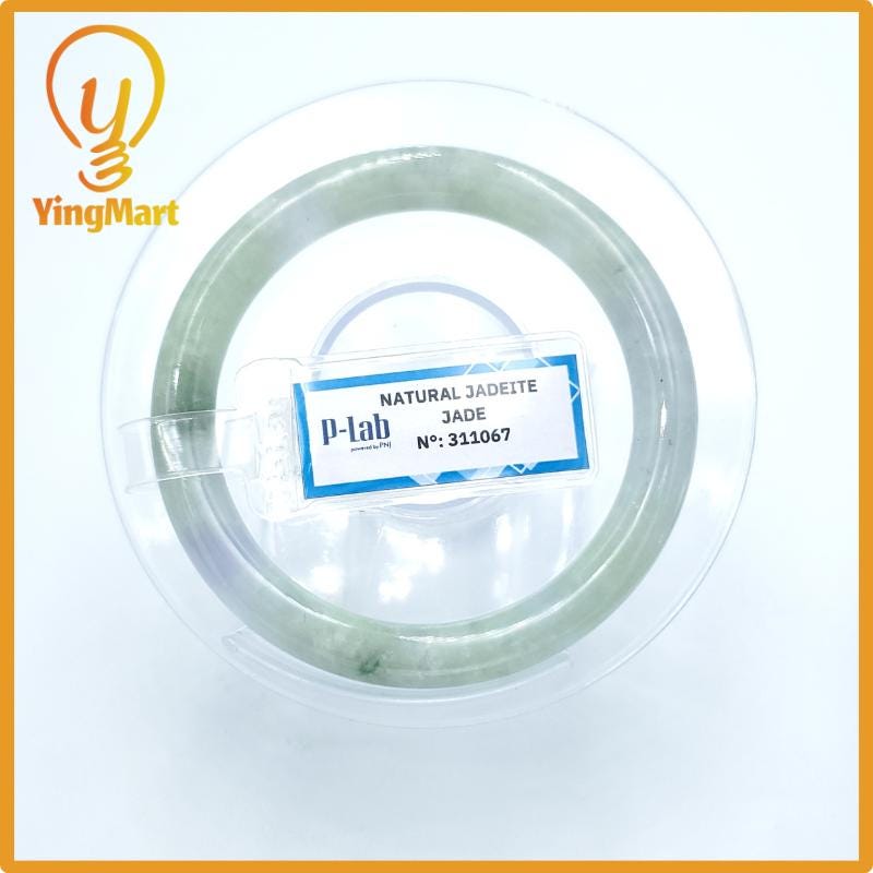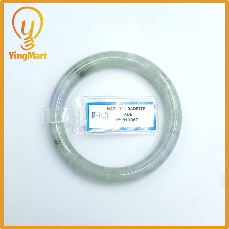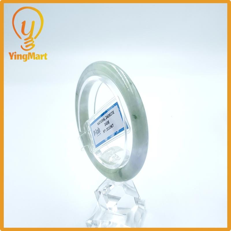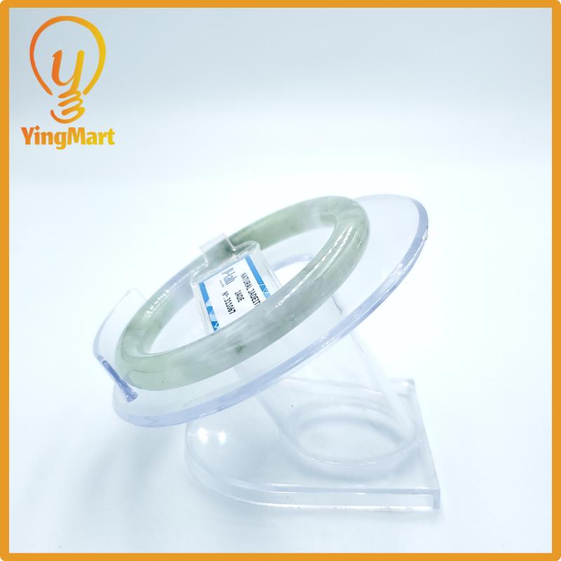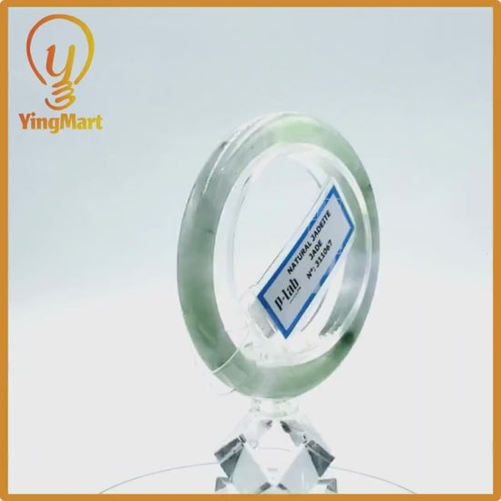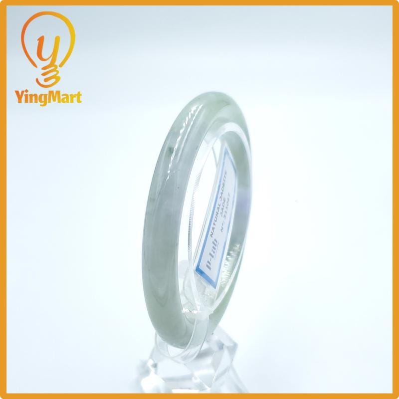 Yingmart 49mm PNJ Certified Natural Color Grey White Natural Jadeite Jade Bangle Bracelet, Real Gemstone, Gift for Her Mom Grandma Sister