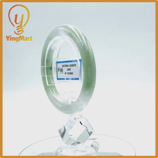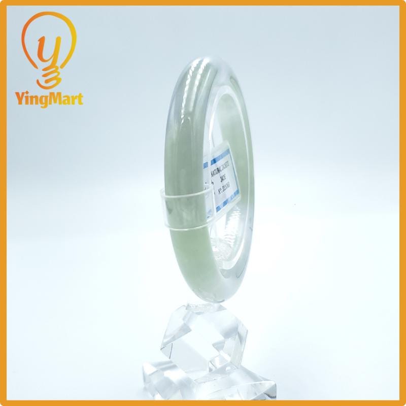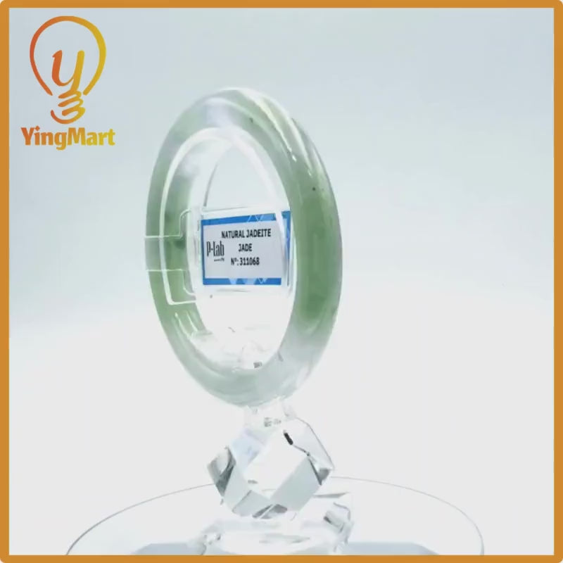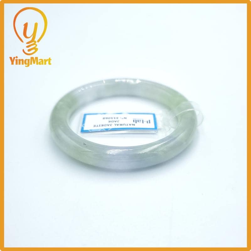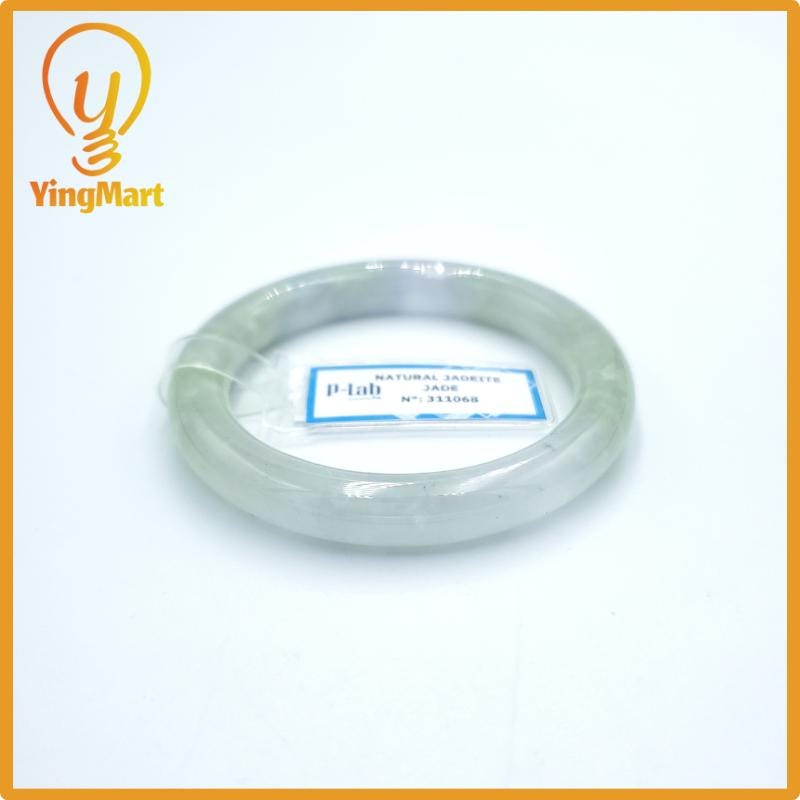 Yingmart 49mm PNJ Certified Natural Color Grey White Natural Jadeite Jade Bangle Bracelet, Real Gemstone, Gift for Her Mom Grandma Sister
