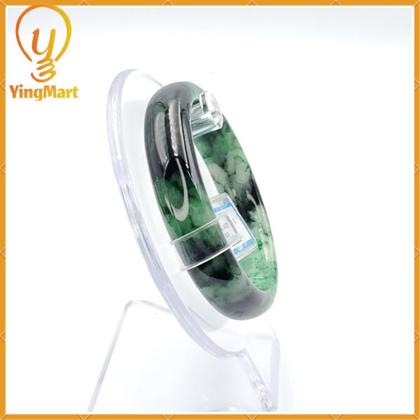 Yingmart 52mm PNJ Certified Natural Color Green With Black Brown Spot Jadeite Jade Bangle Bracelet, Real Gemstone, Jewelry