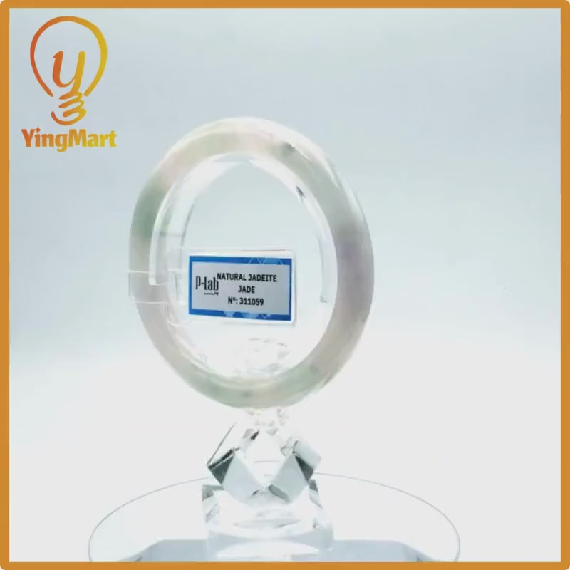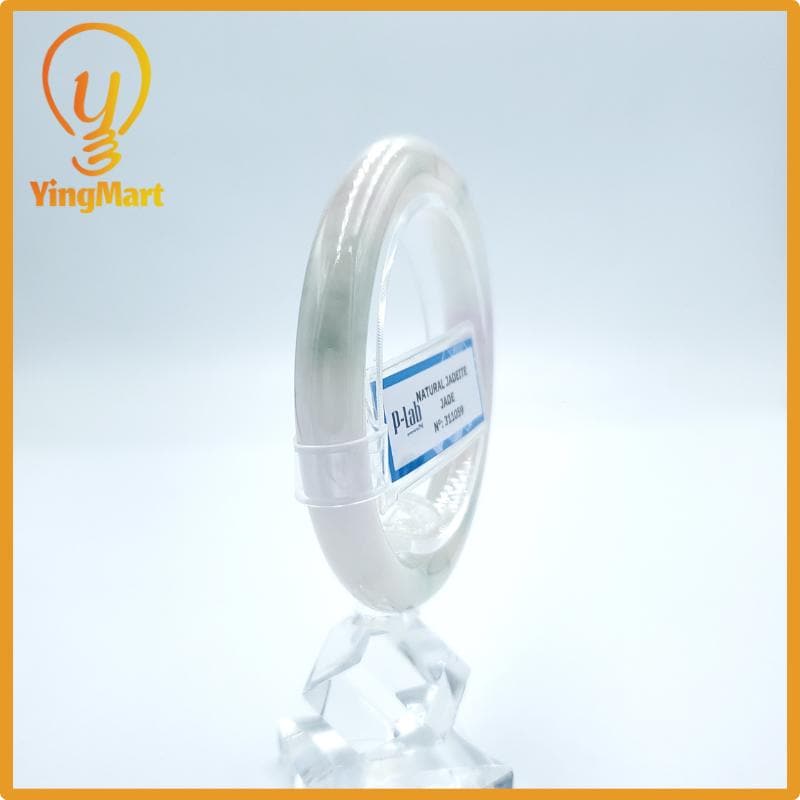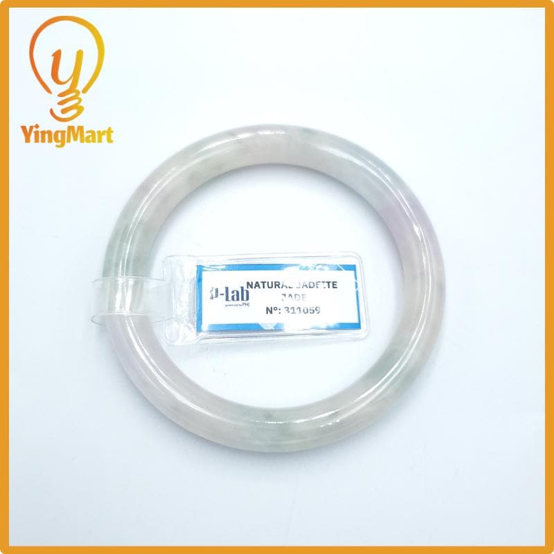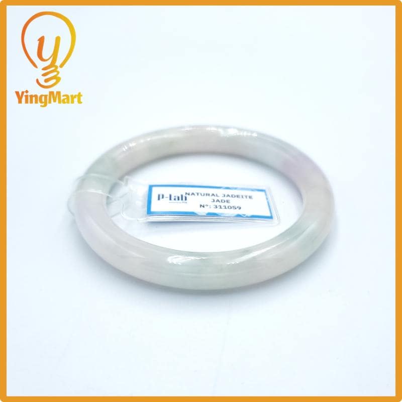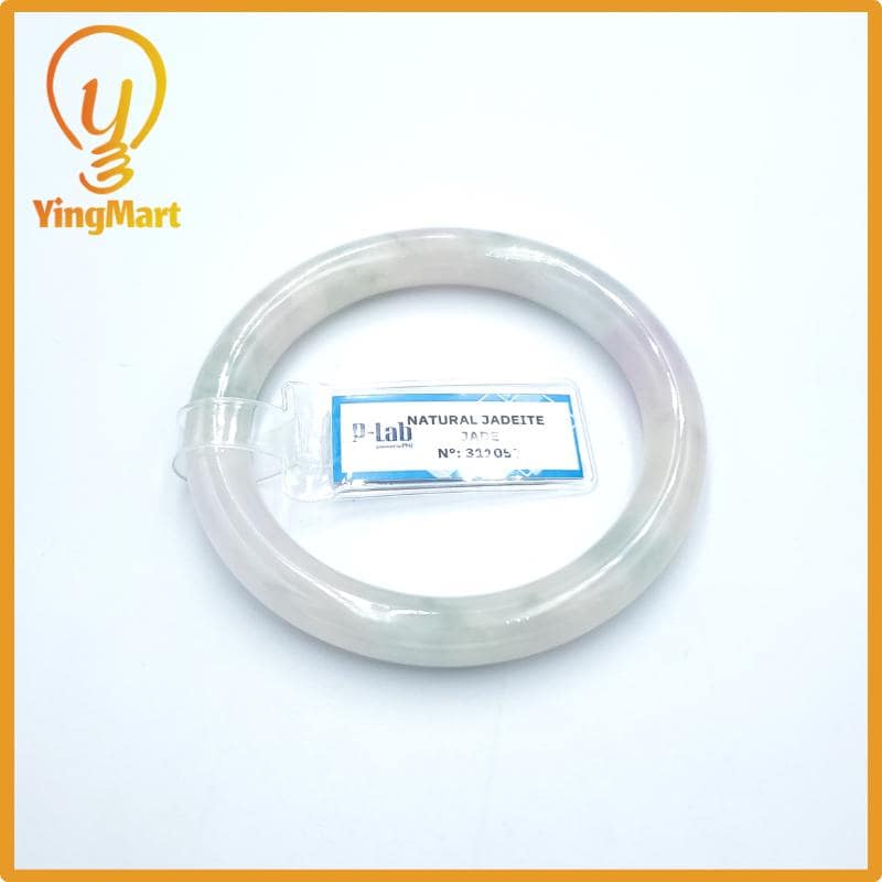 Yingmart 52mm PNJ Certified Natural Color Grey White Natural Jadeite Jade Bangle Bracelet, Real Gemstone, Gift for Her Mom Grandma Sister