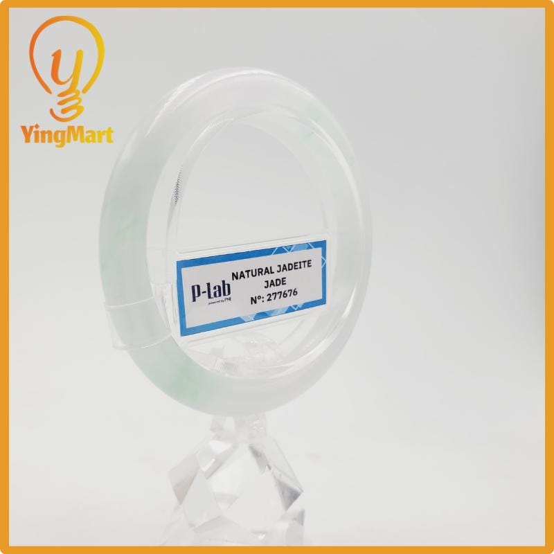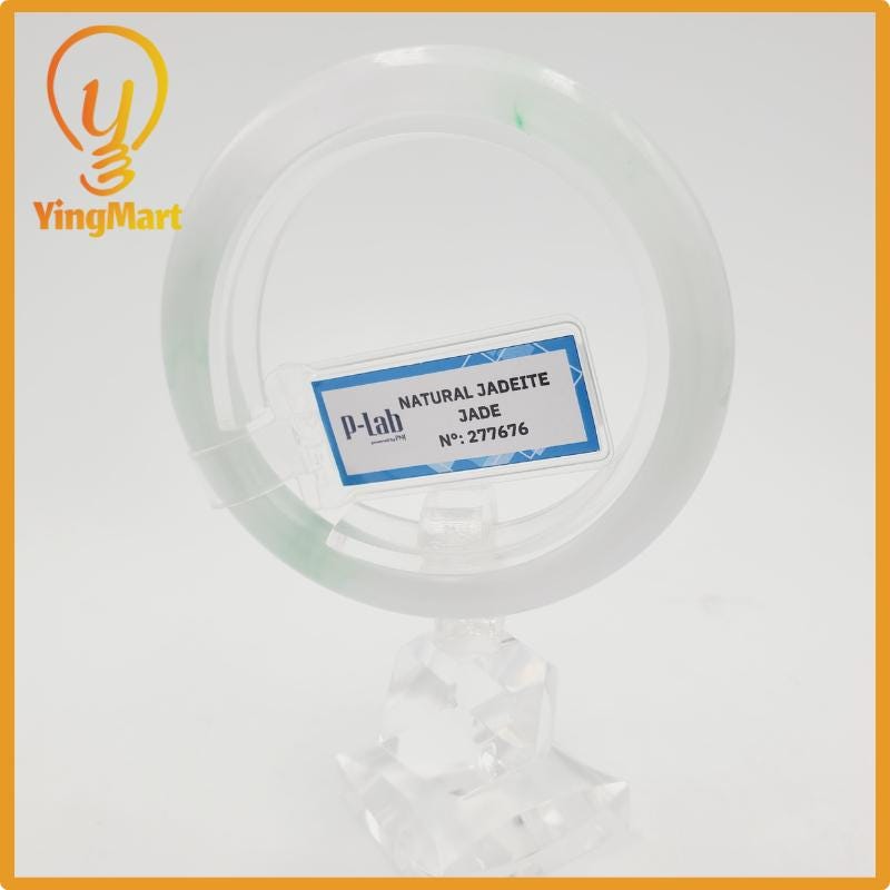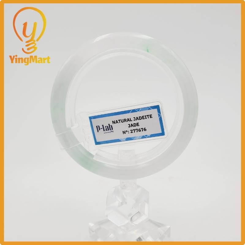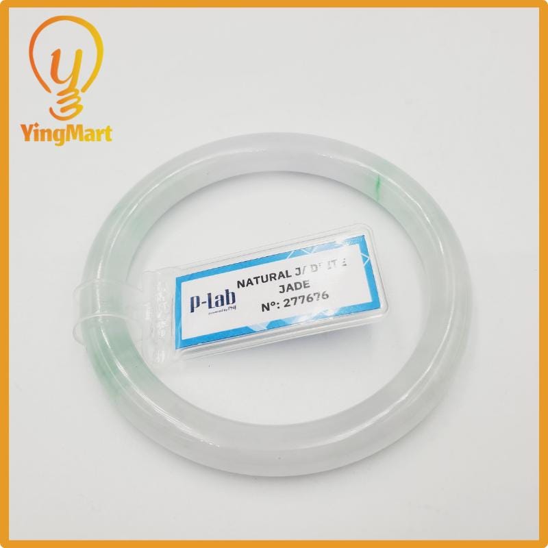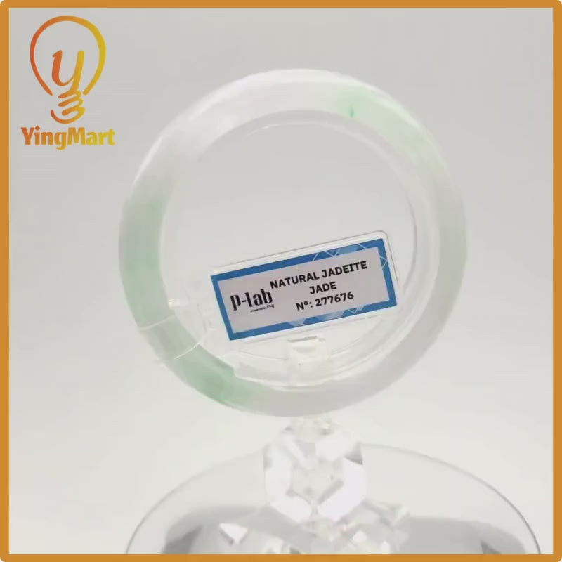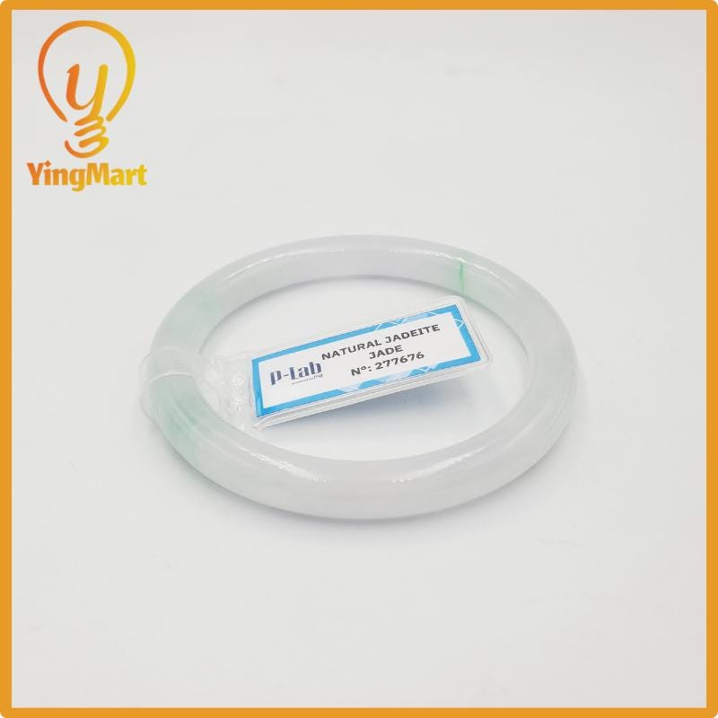 Yingmart 52mm PNJ277676 Certified Natural Color Grey White Natural Jadeite Jade Bangle Bracelet, Real Gemstone, Gift for Mom Grandma Sister