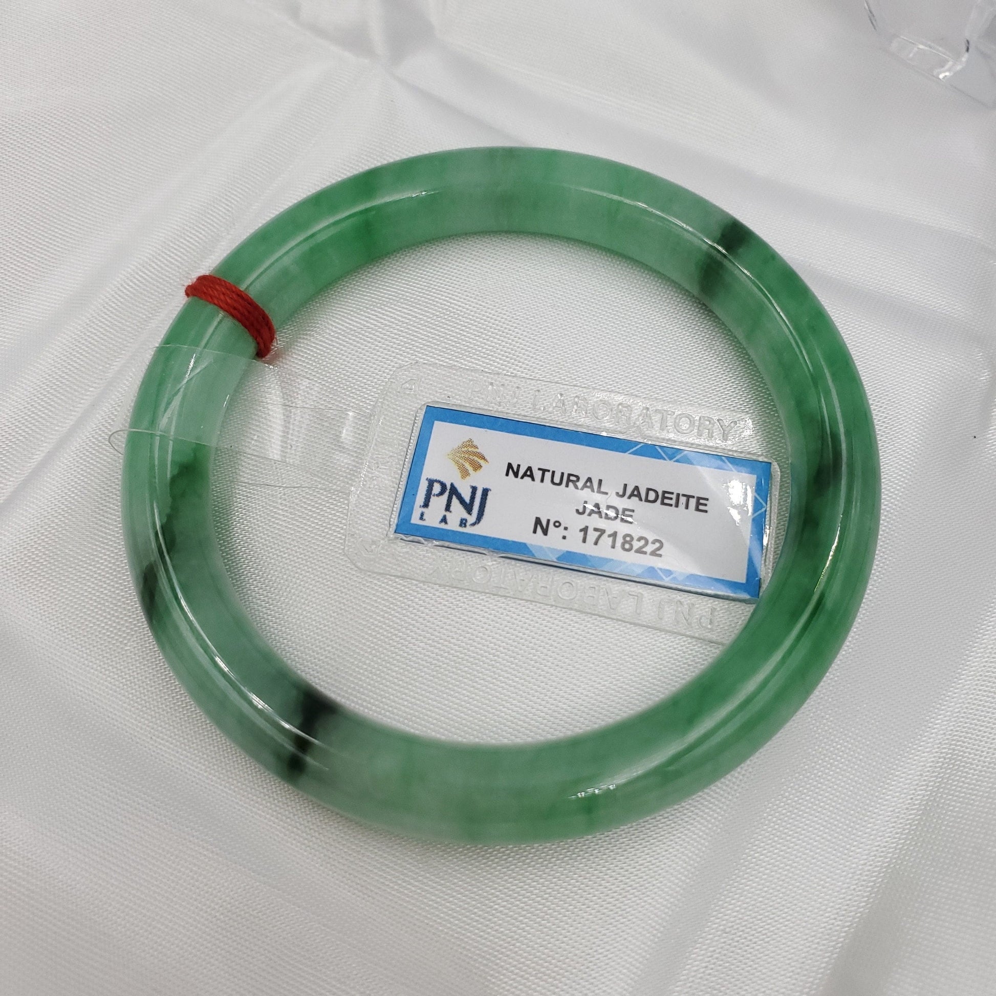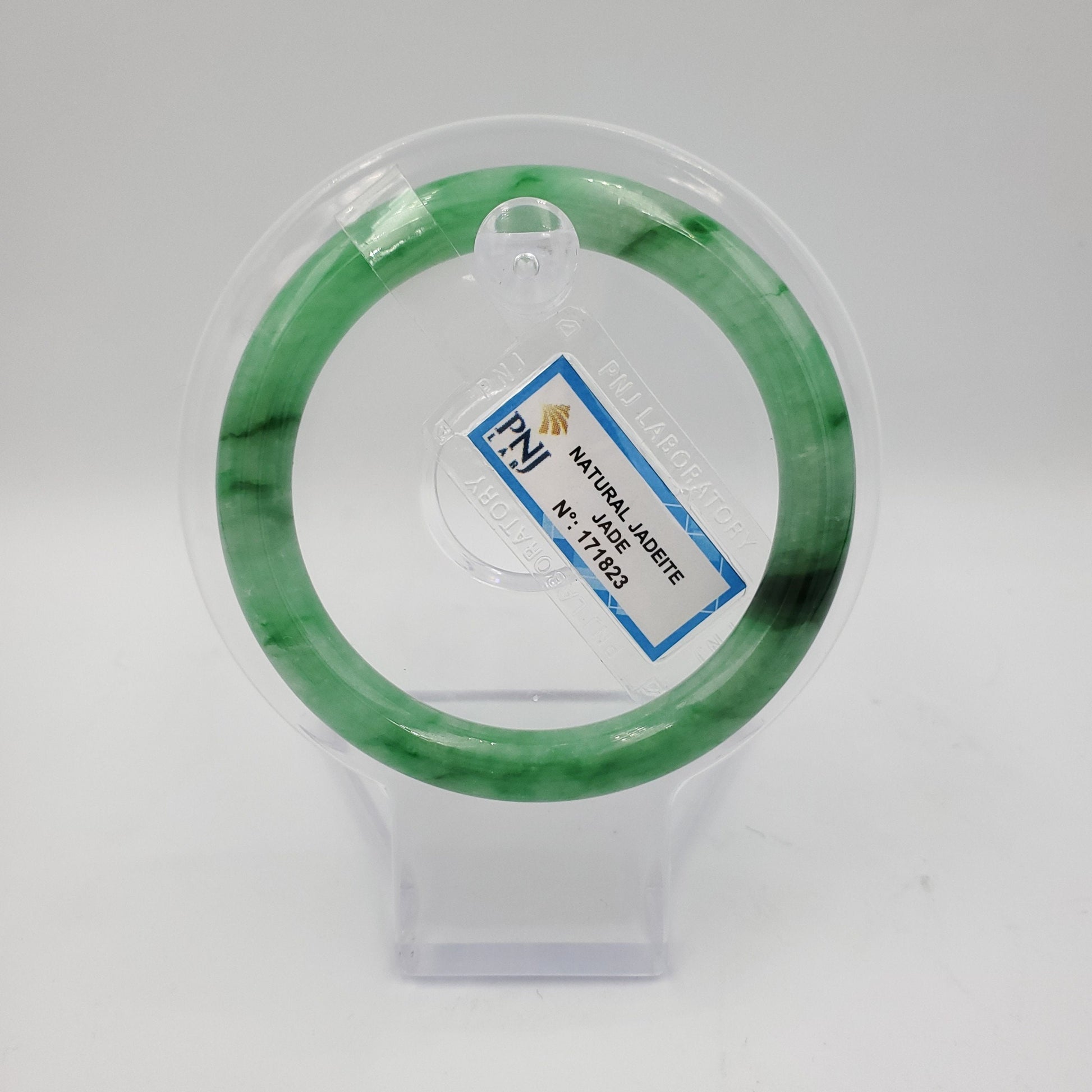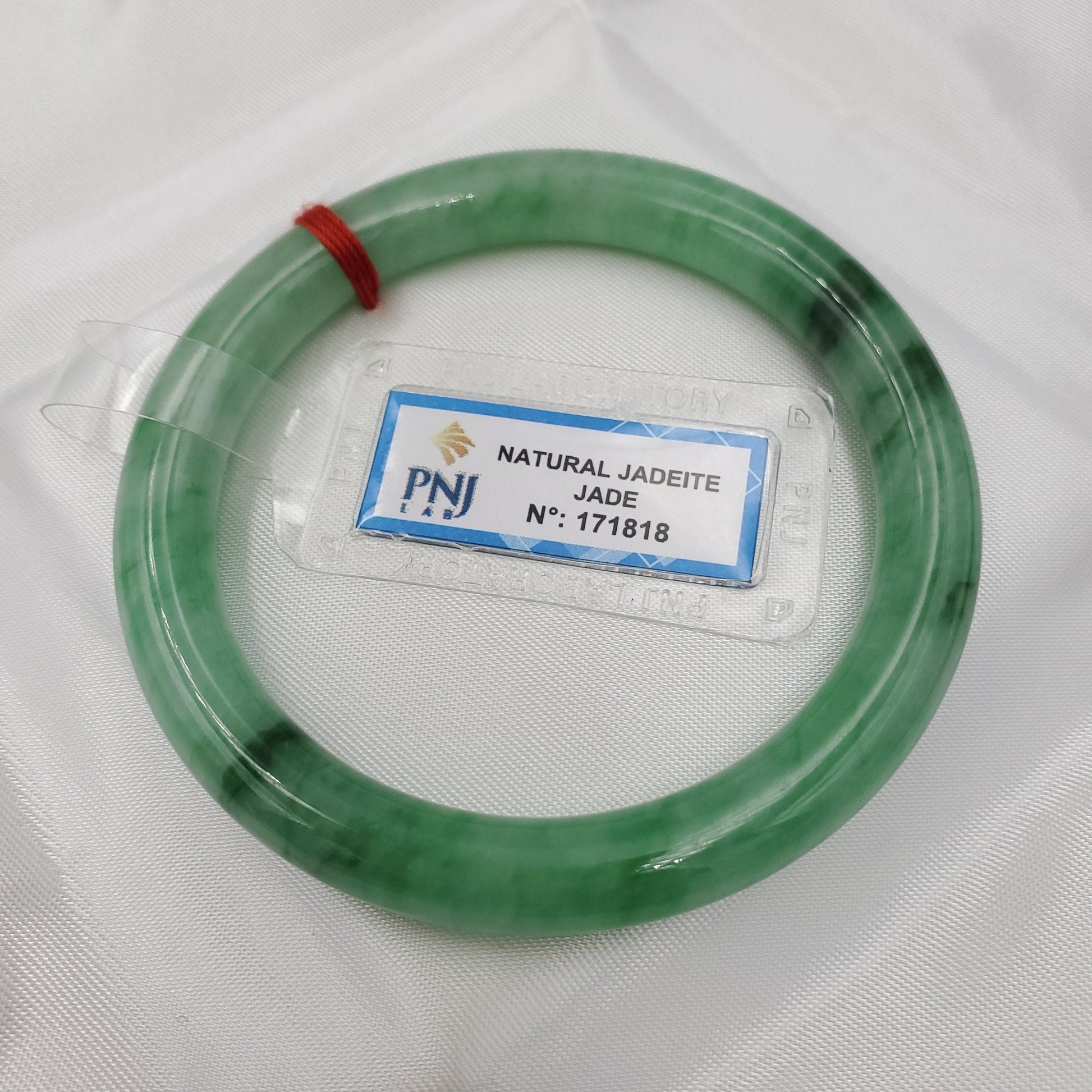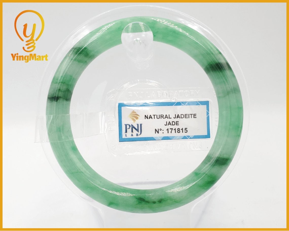 Yingmart 53 to 56mm PNJ certified natural color green with black brown spot jadeite jade bangle bracelet, real gemstone, jewelry
