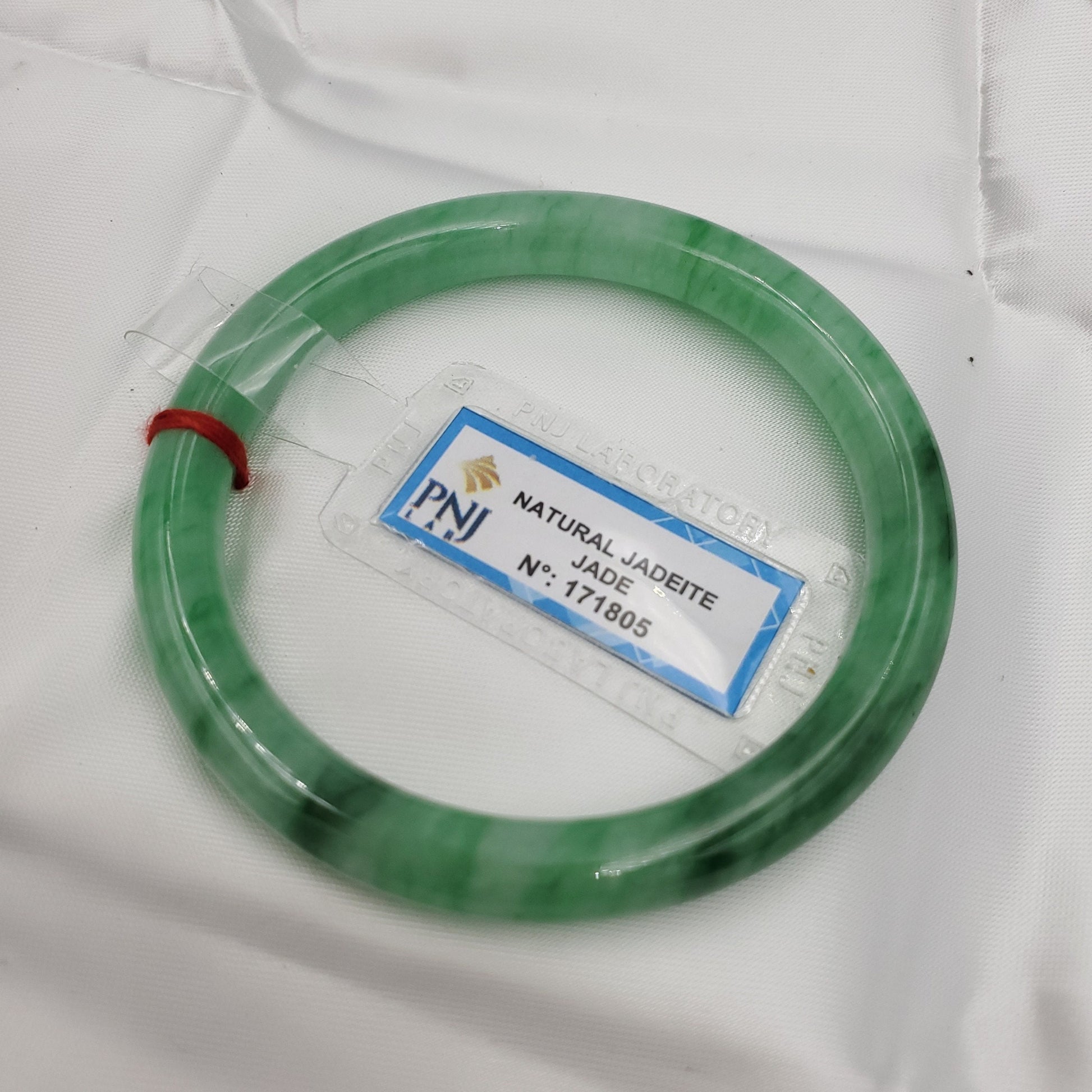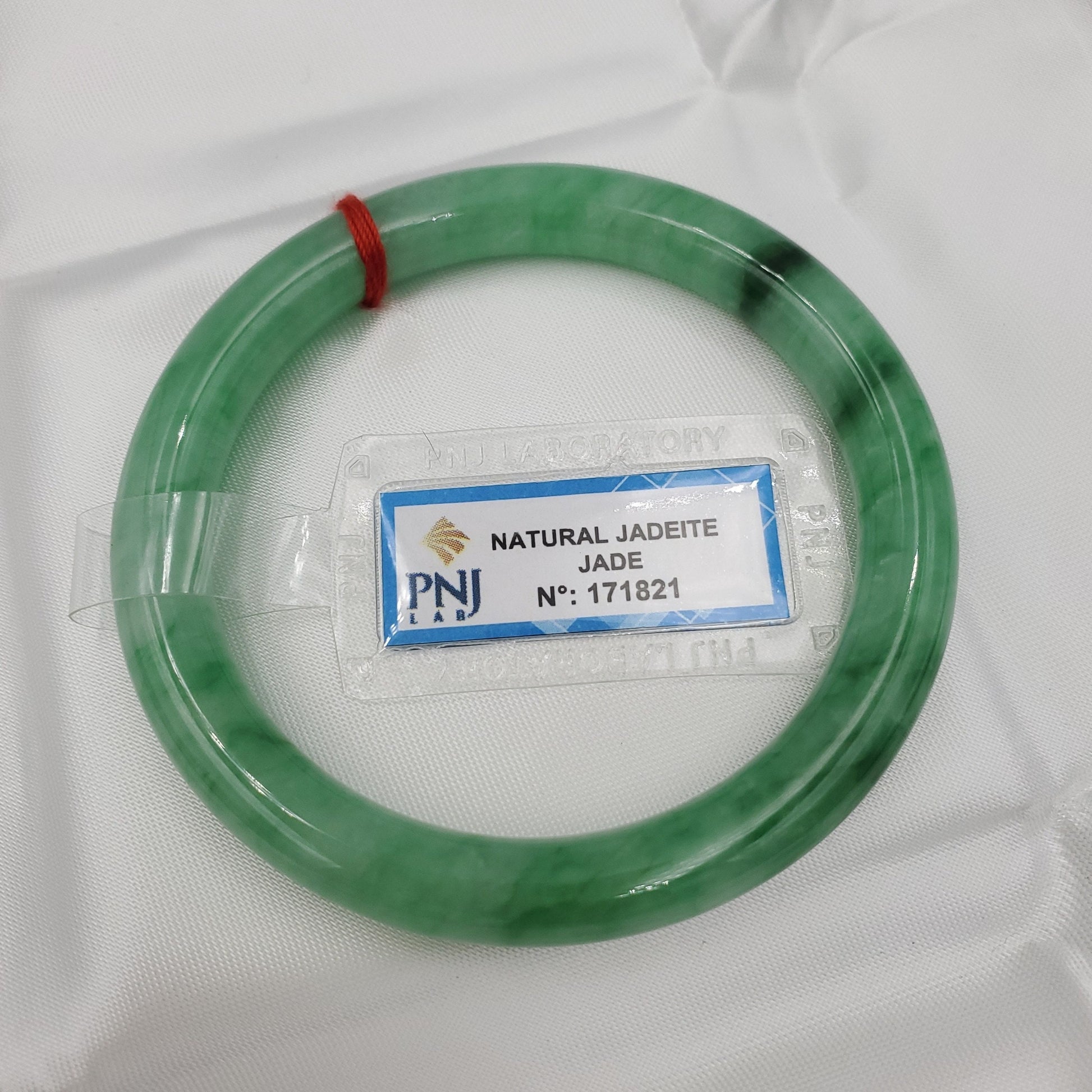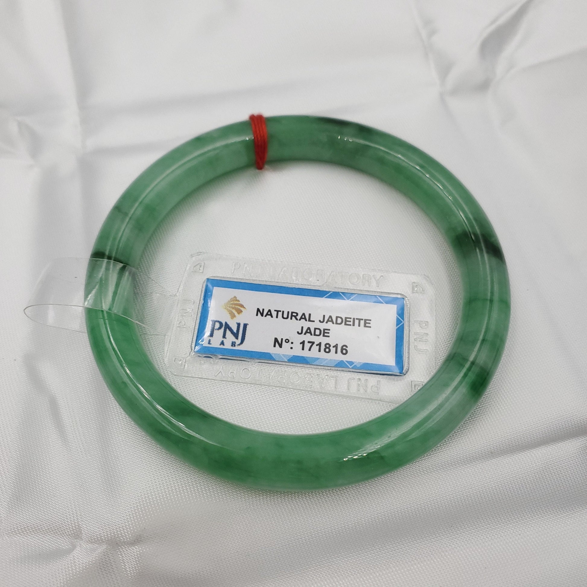 Yingmart 53 to 56mm PNJ certified natural color green with black brown spot jadeite jade bangle bracelet, real gemstone, jewelry