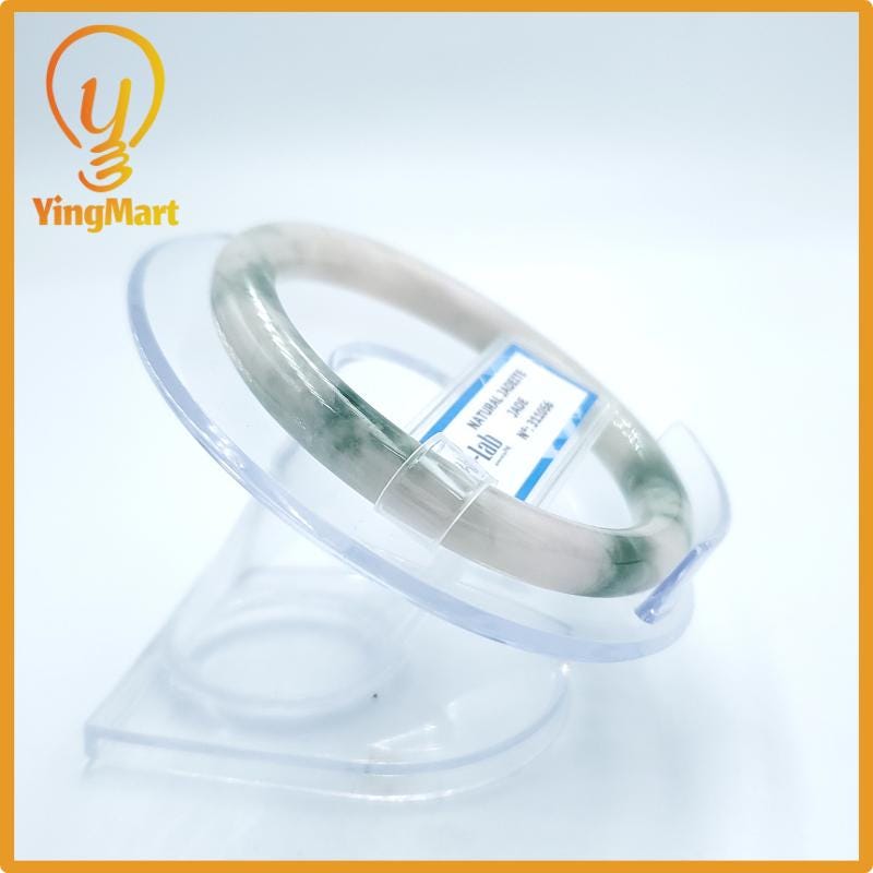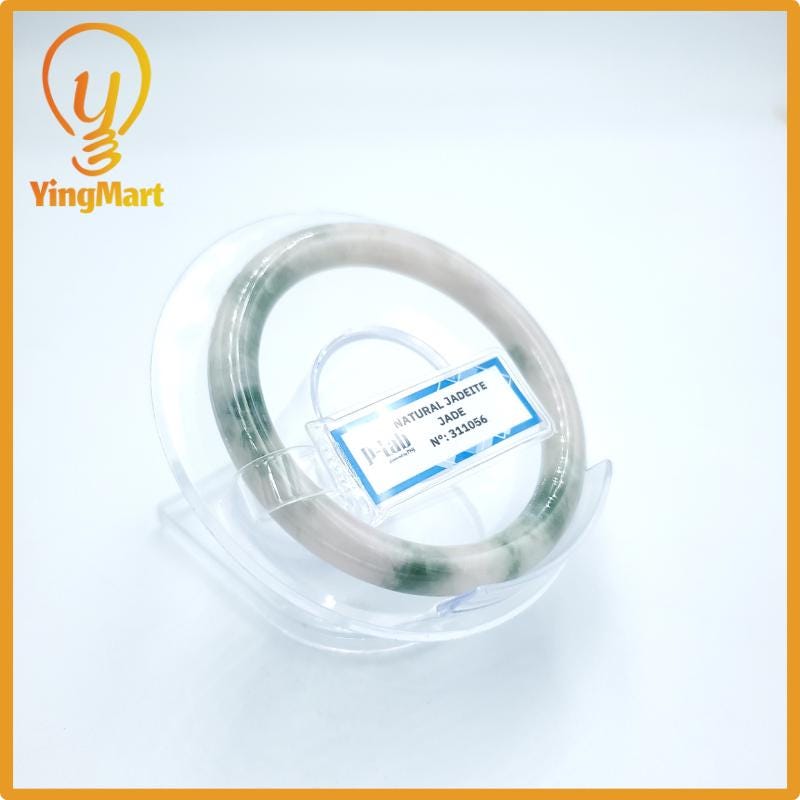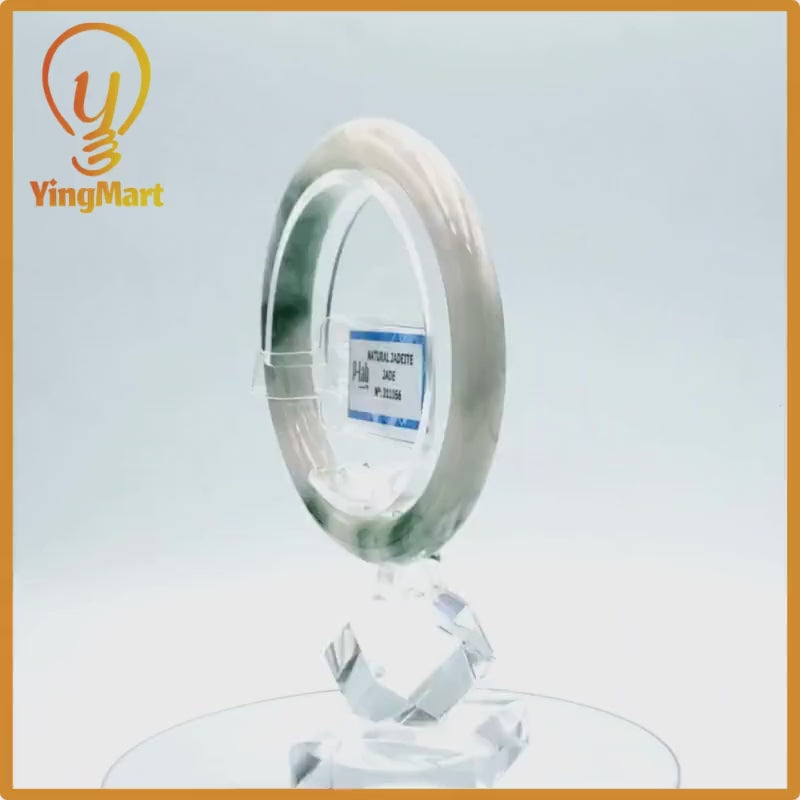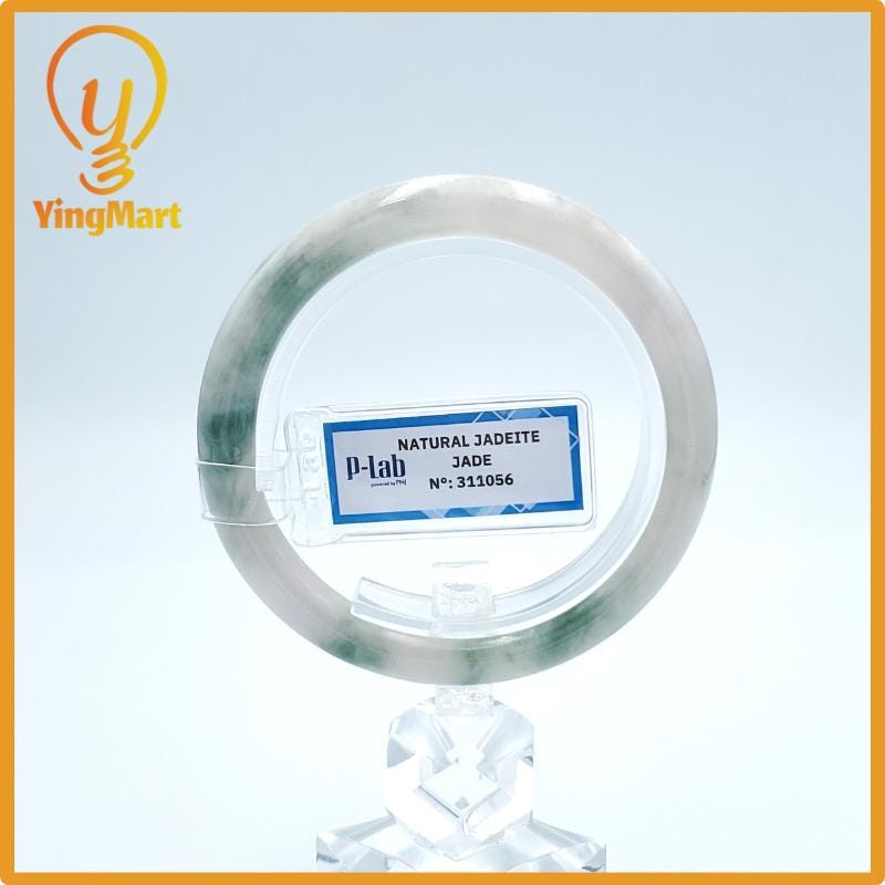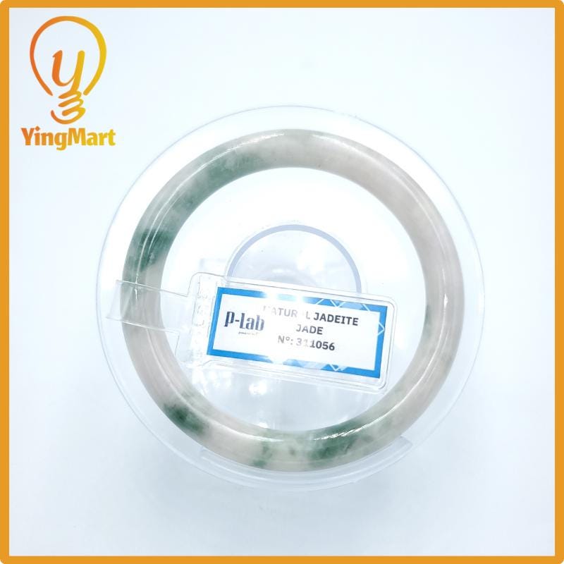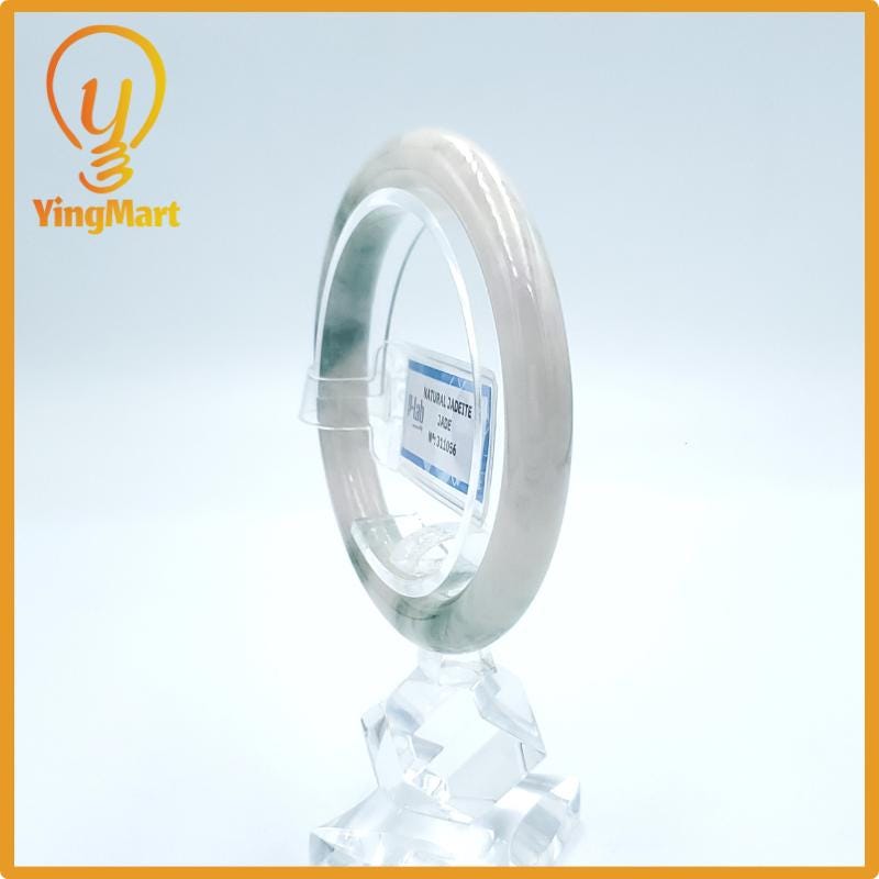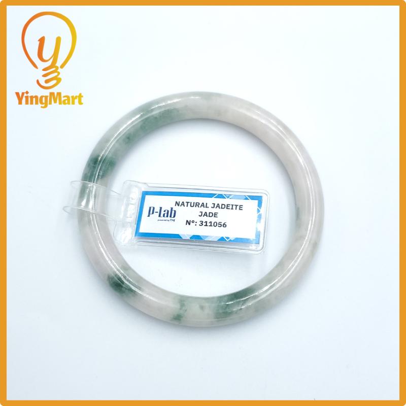 Yingmart 53mm PNJ Certified Natural Color Grey White Natural Jadeite Jade Bangle Bracelet, Real Gemstone, Gift for Her Mom Grandma Sister