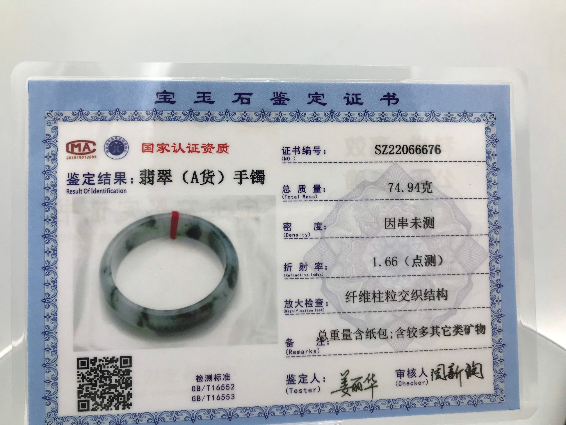 Yingmart 54mm 72BJGB54002 Genuine Burmese Jade A Light Green with Black spot Jaideite Bangle Bracelet, Vintage Jewelry, Accessories
