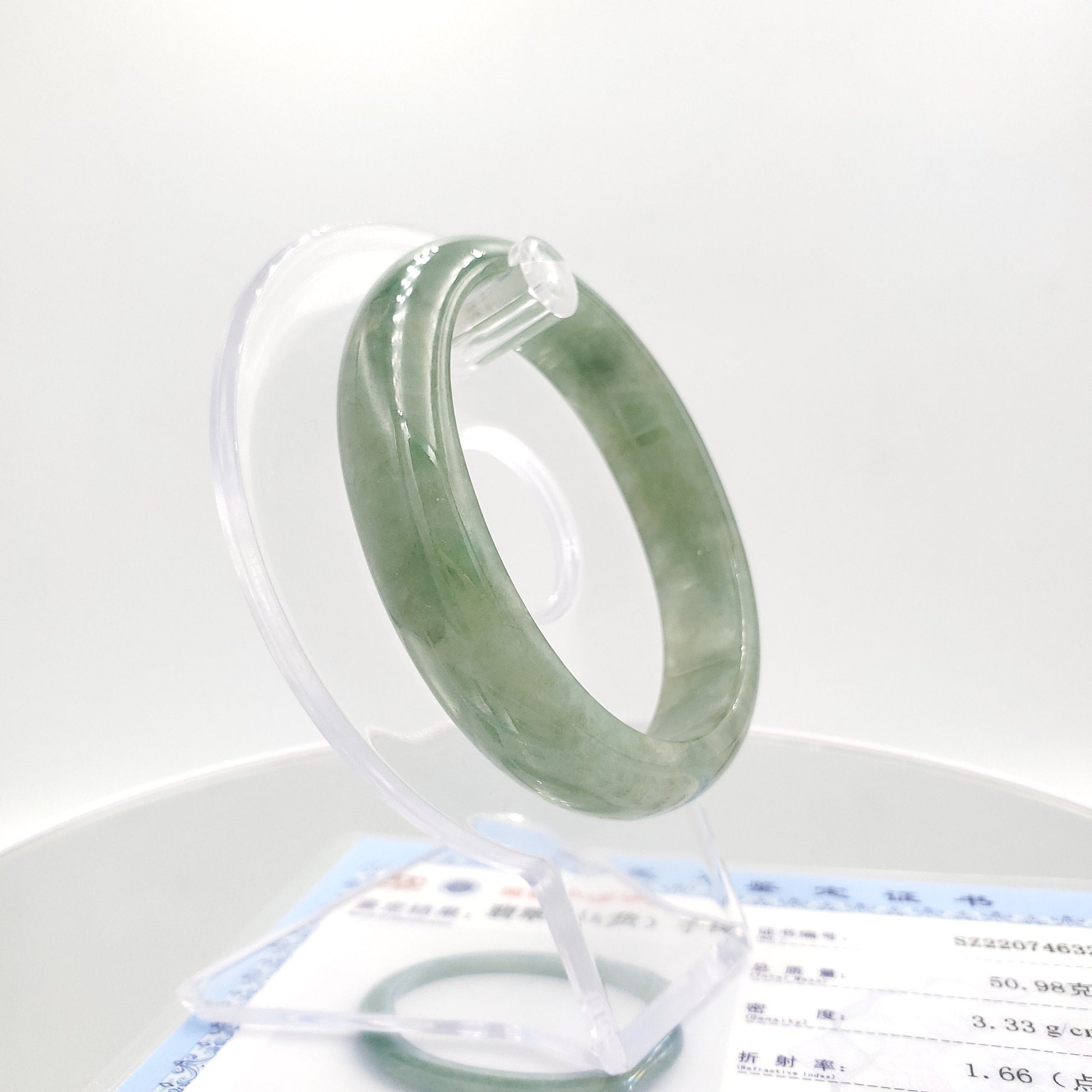 Yingmart 56.2mm SZ22074632 Semi-translucent Green Genuine Burmese Jade A Jaideite Jade Bangle, Vintage Jewelry, jade jewelry, Accessories