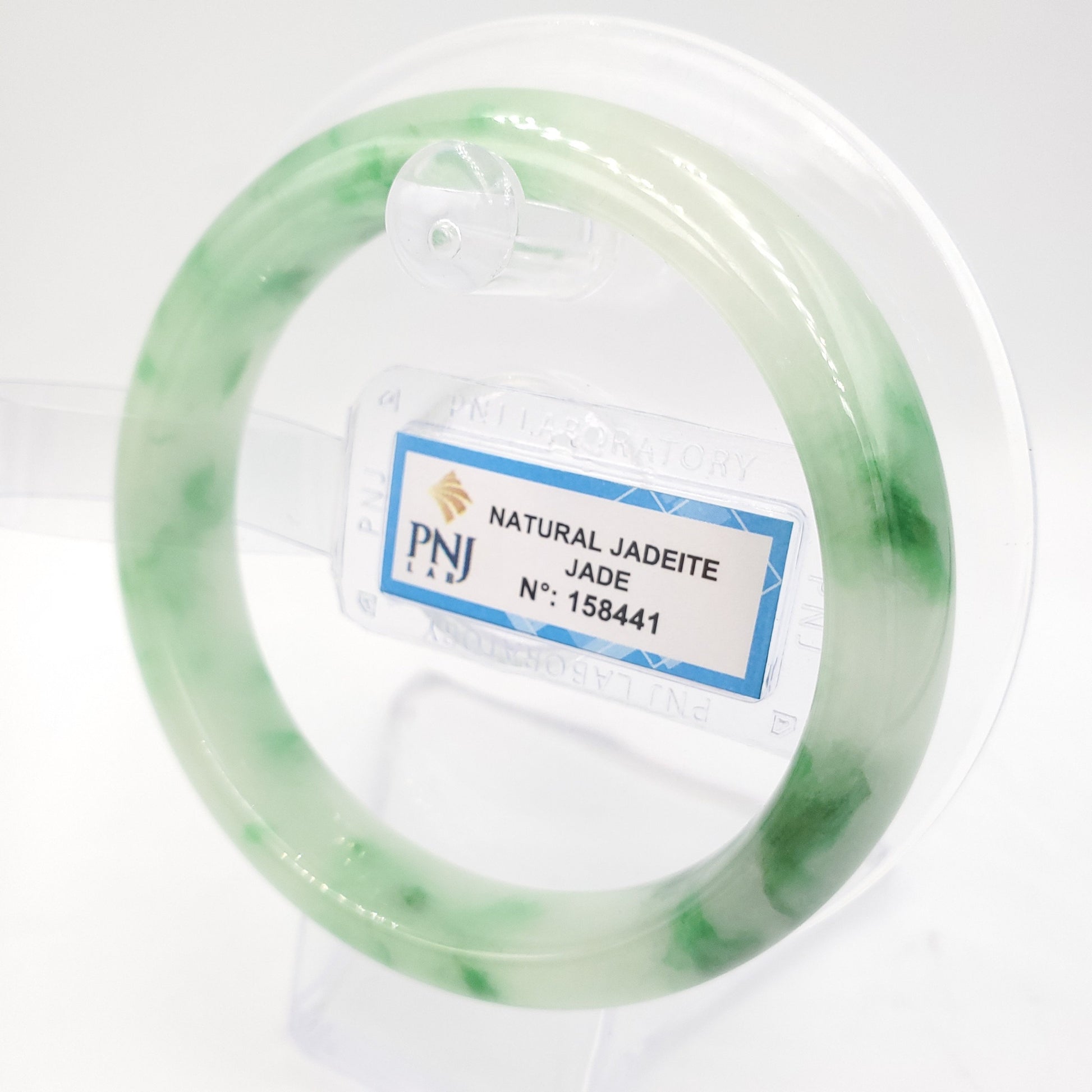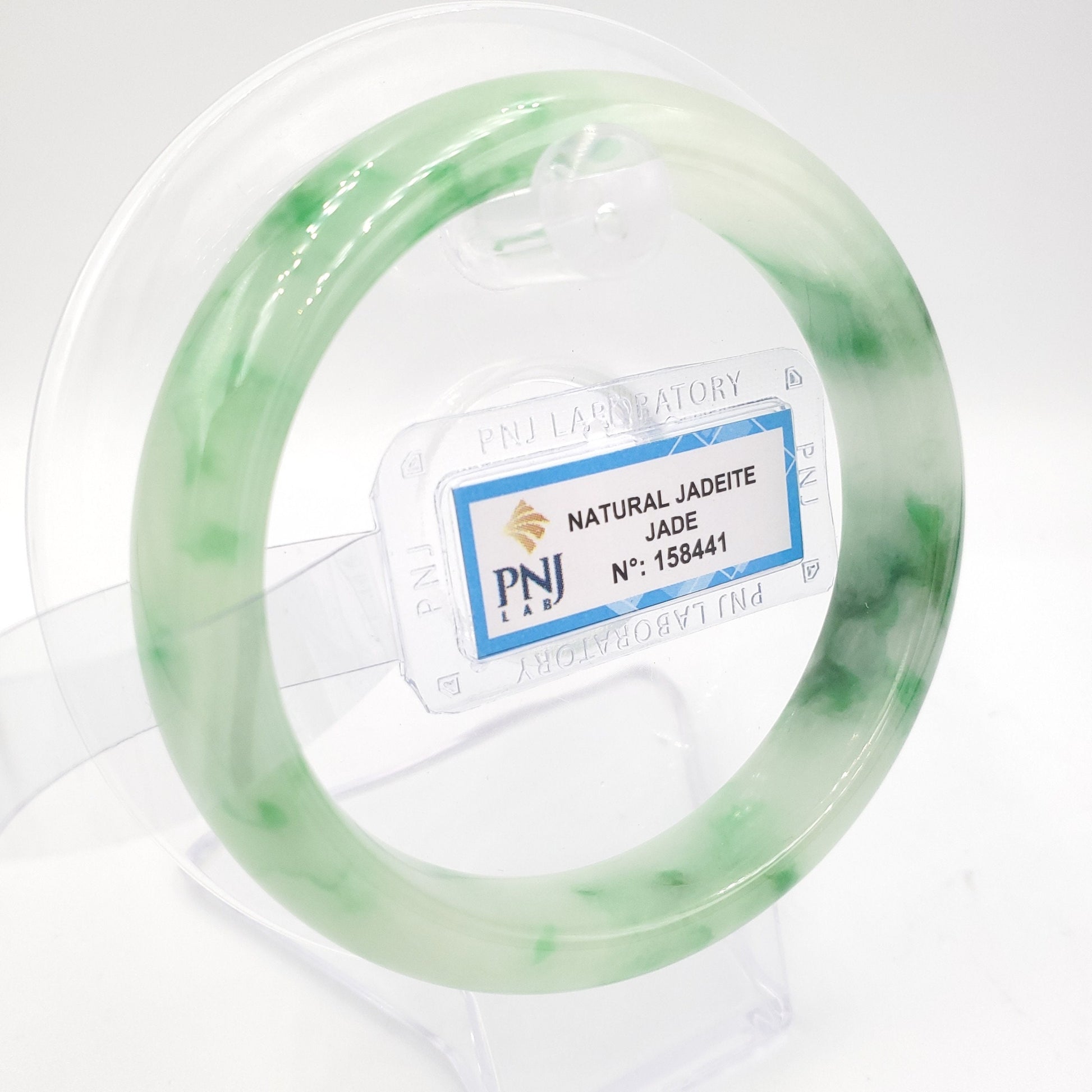Yingmart 57mm Certified Natural Color Green with Spots Natural Jadeite Jade Bangle Bracelet, Real Gemstone, Jewelry, PNJ158441