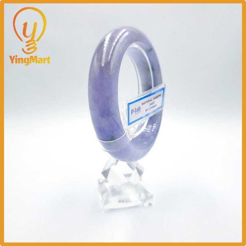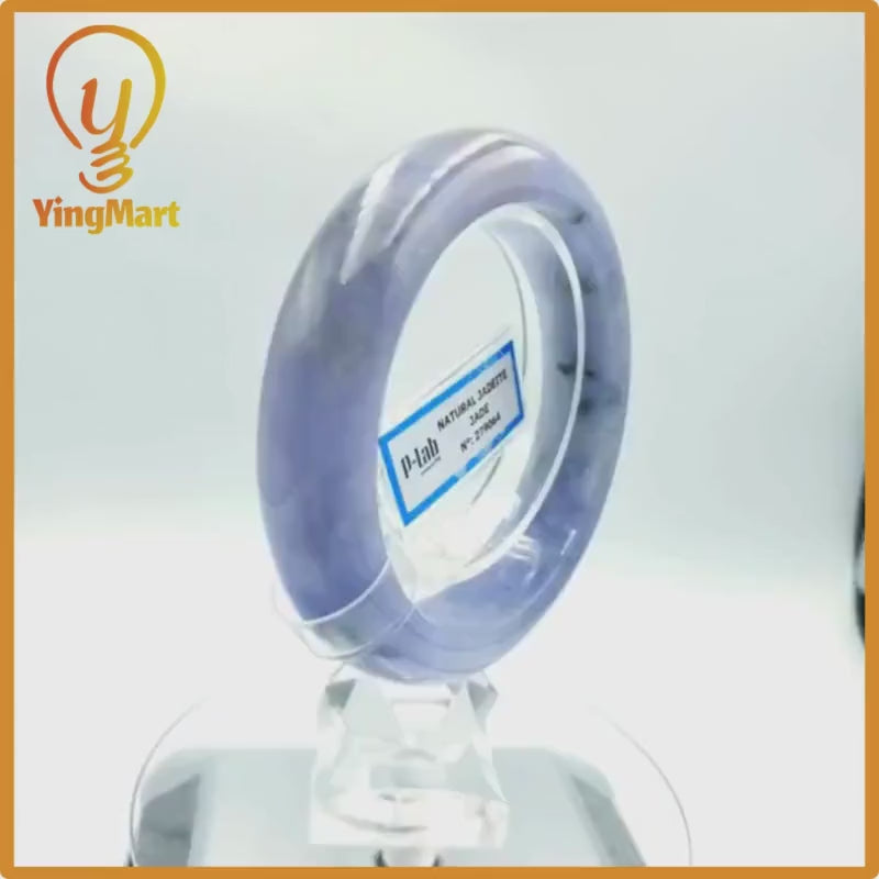 Yingmart 57mm PNJ Certified Natural Color Grey White Natural Jadeite Jade Bangle Bracelet, Real Gemstone, Gift for Her Mom Grandma
