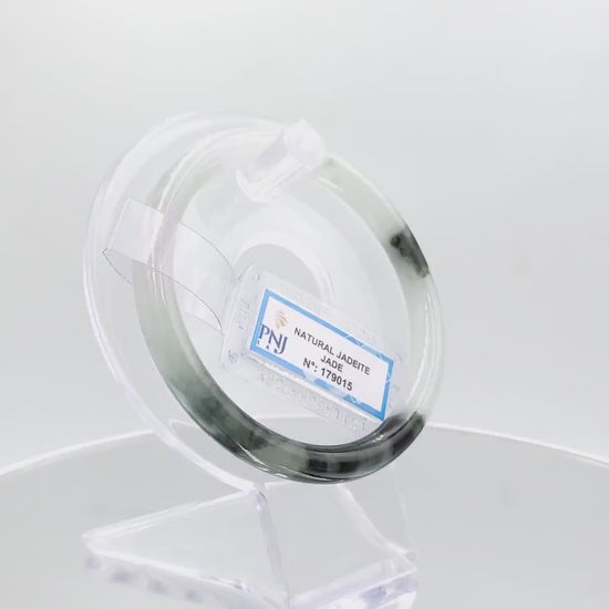 Yingmart 59mm Certified Natural grey green, purplish white, black brown spots jadeite jade bangle, Real Gemstone Bracelet,Vintage Jewelry
