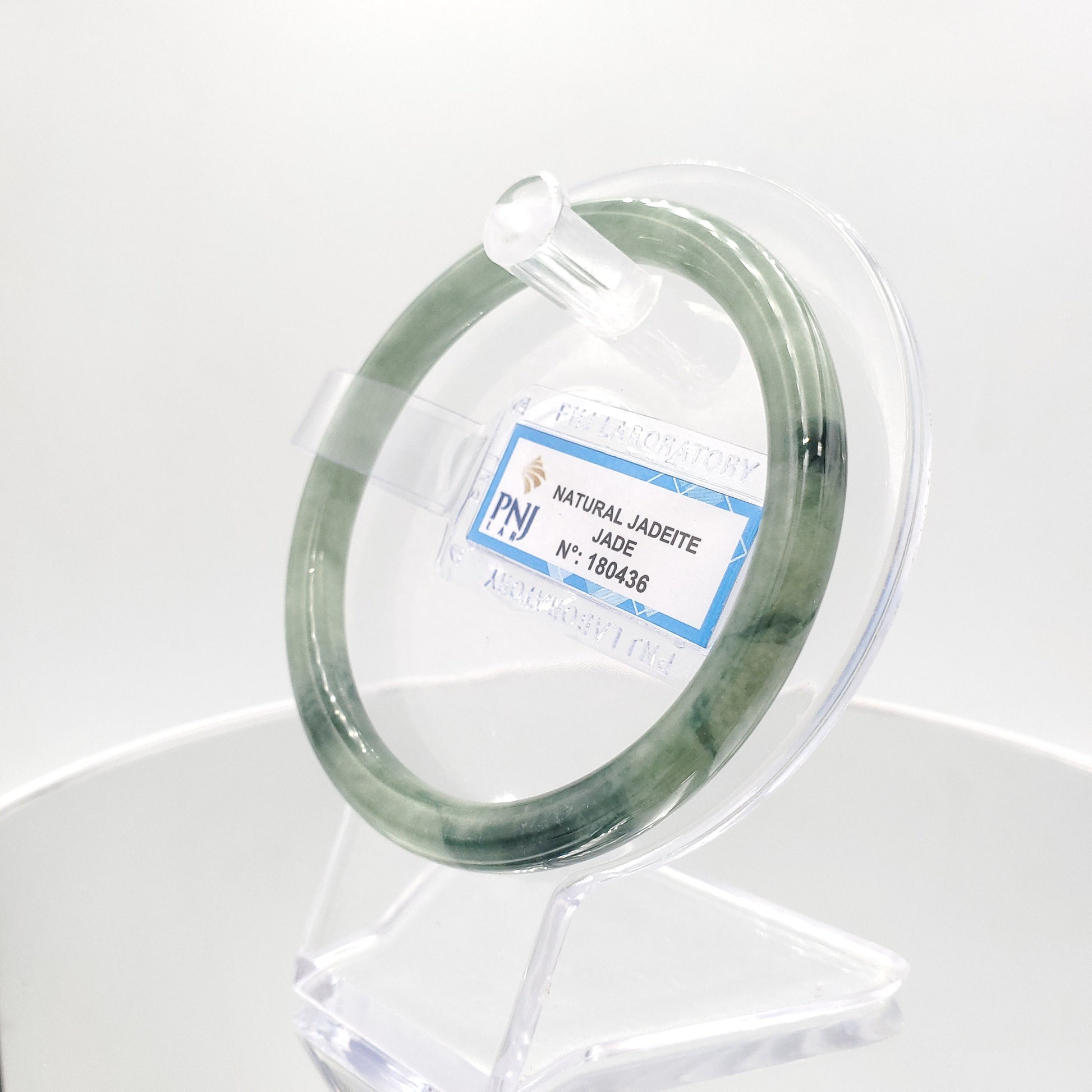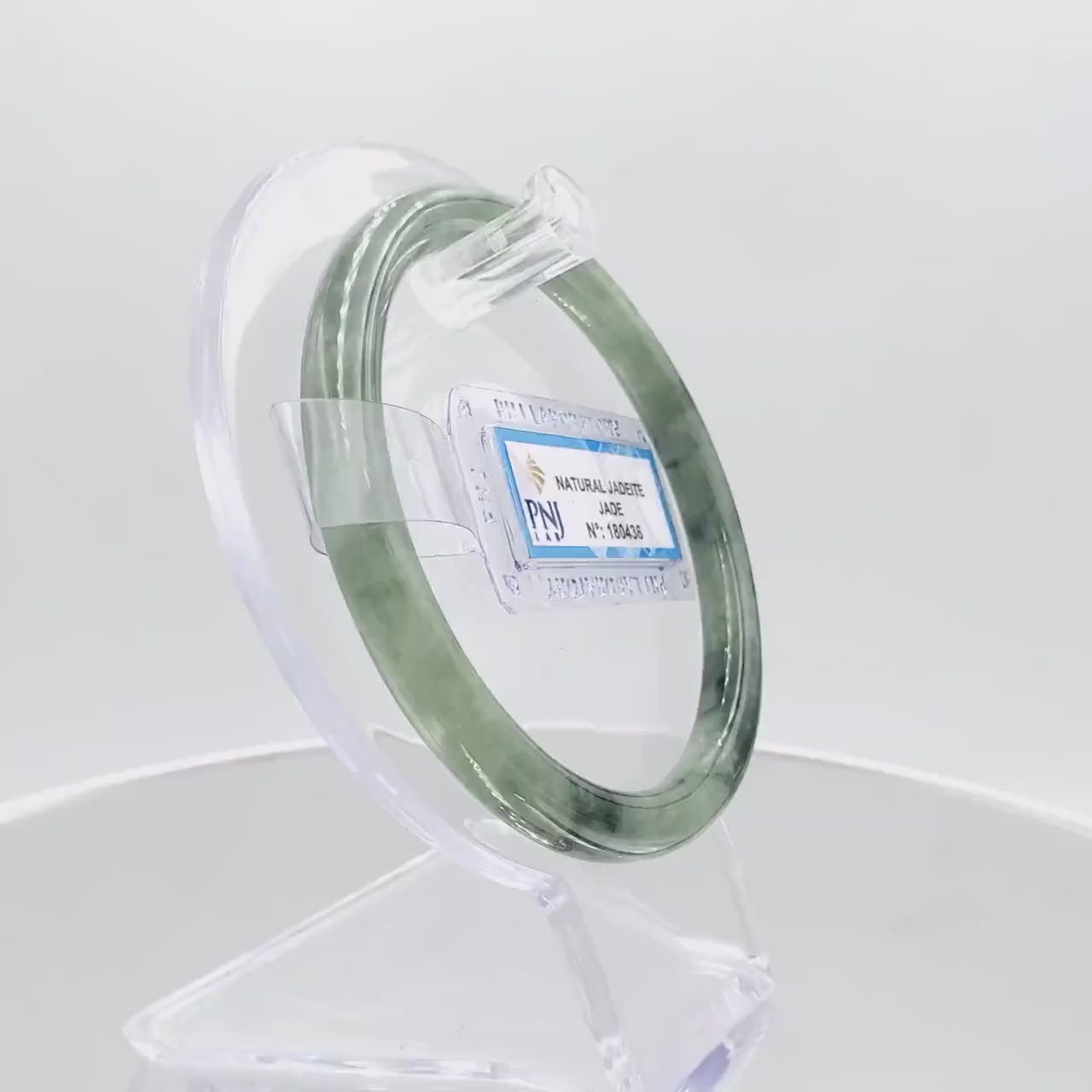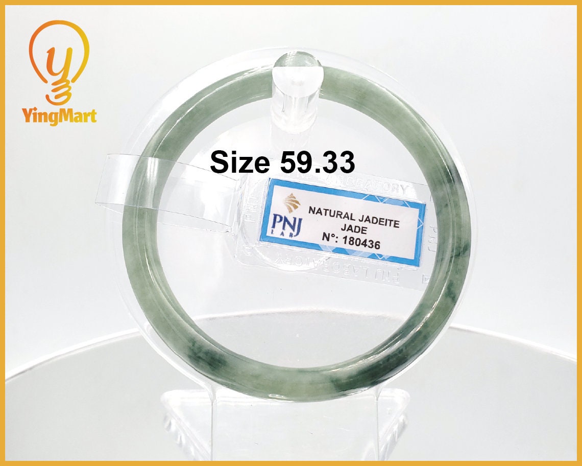 Yingmart 59mm Certified Natural Light To Dark Greyish Green. Grey White jade bangle Bracelet, Real Gemstone Bracelet, Vintage Jewelry