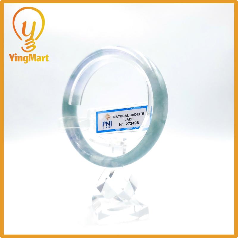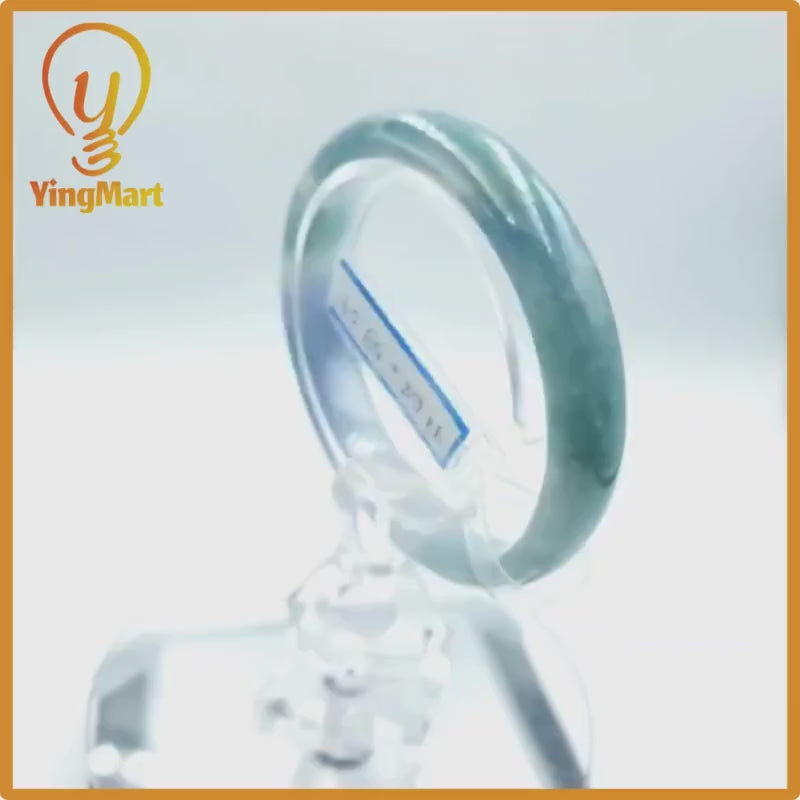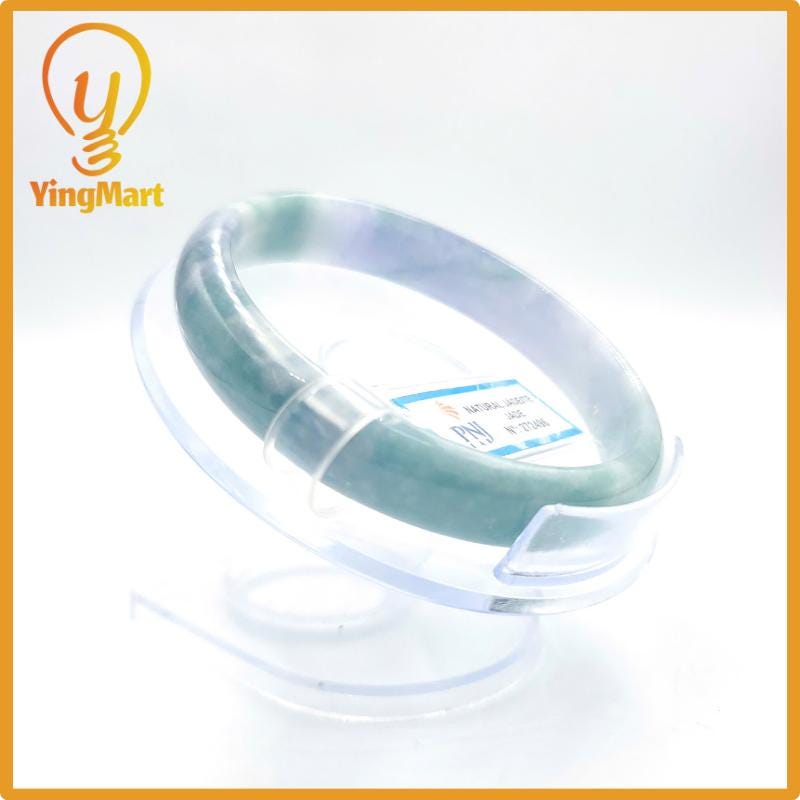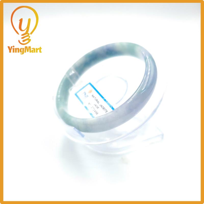 Yingmart 59mm PNJ Certified Natural Color Grey White Natural Jadeite Jade Bangle Bracelet, Real Gemstone, Gift for Her Mom Grandma Sister