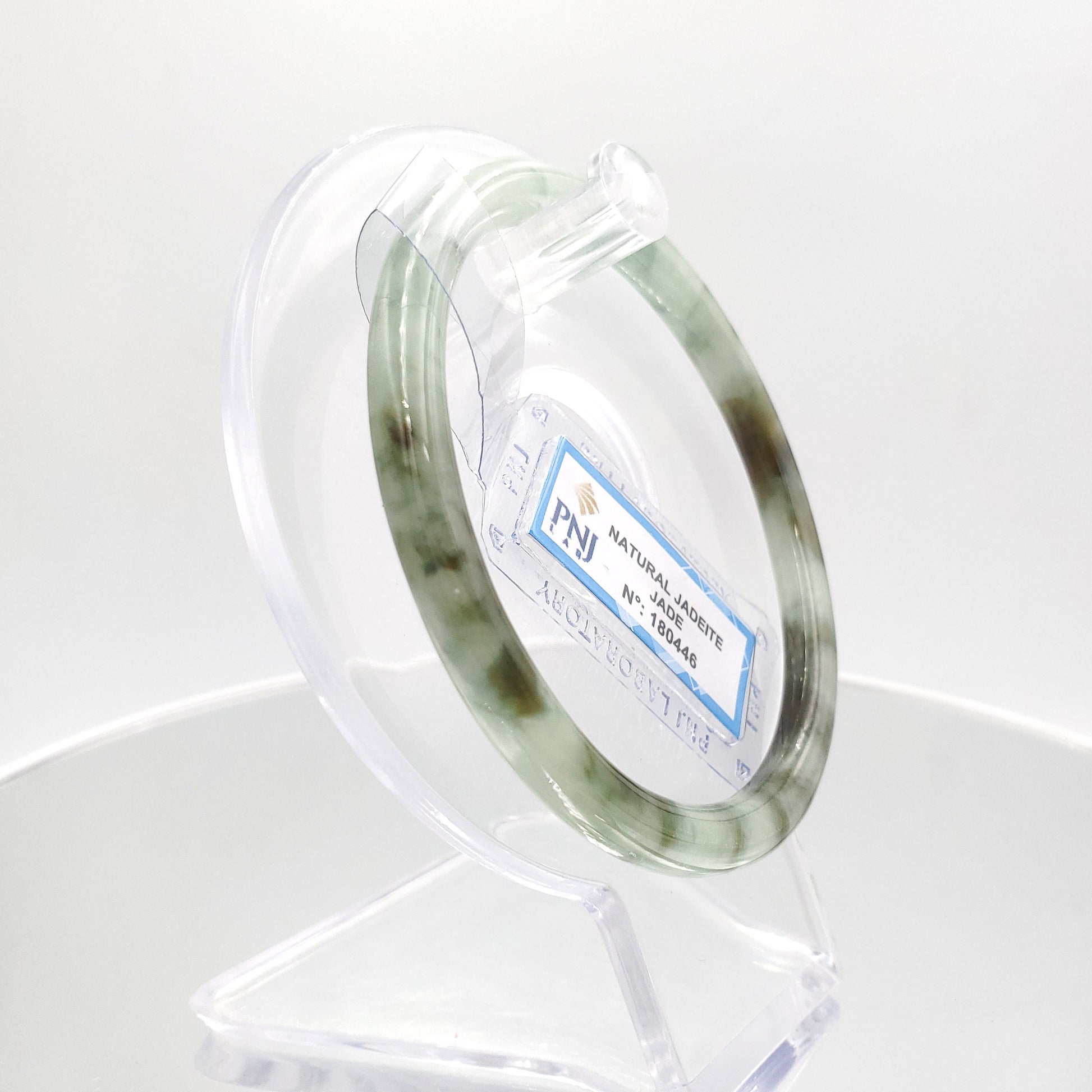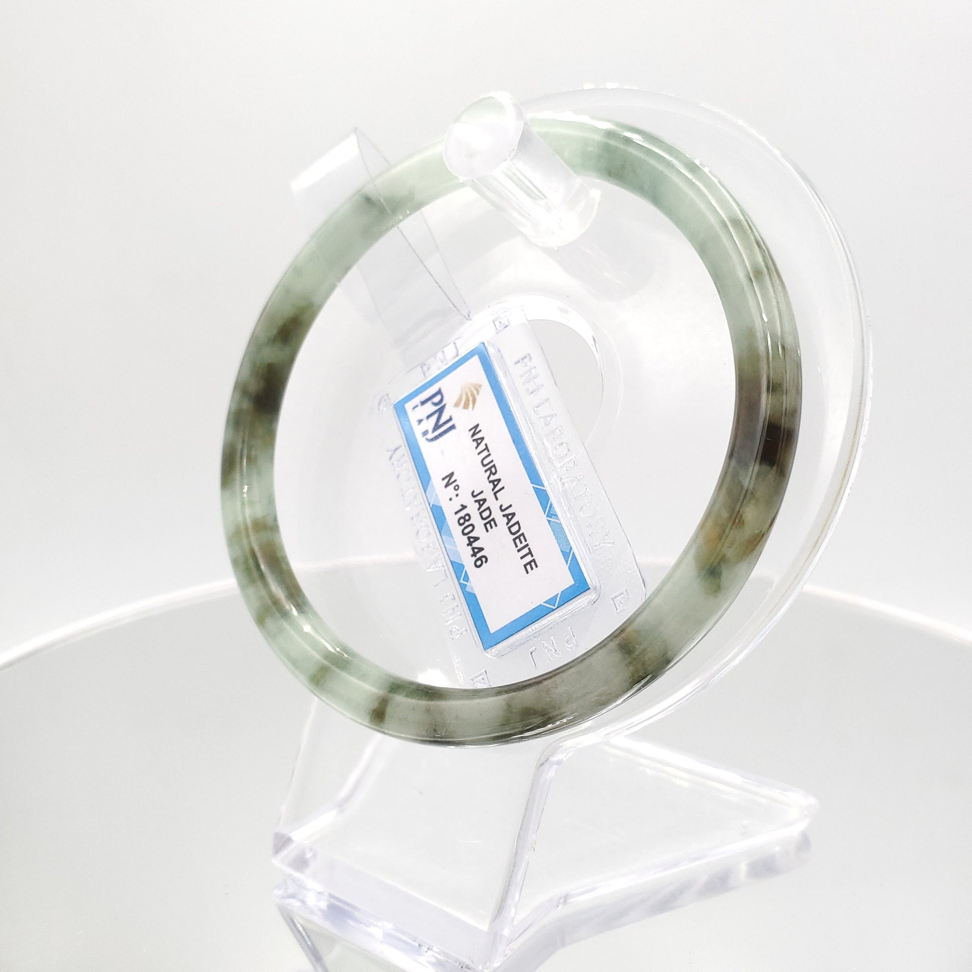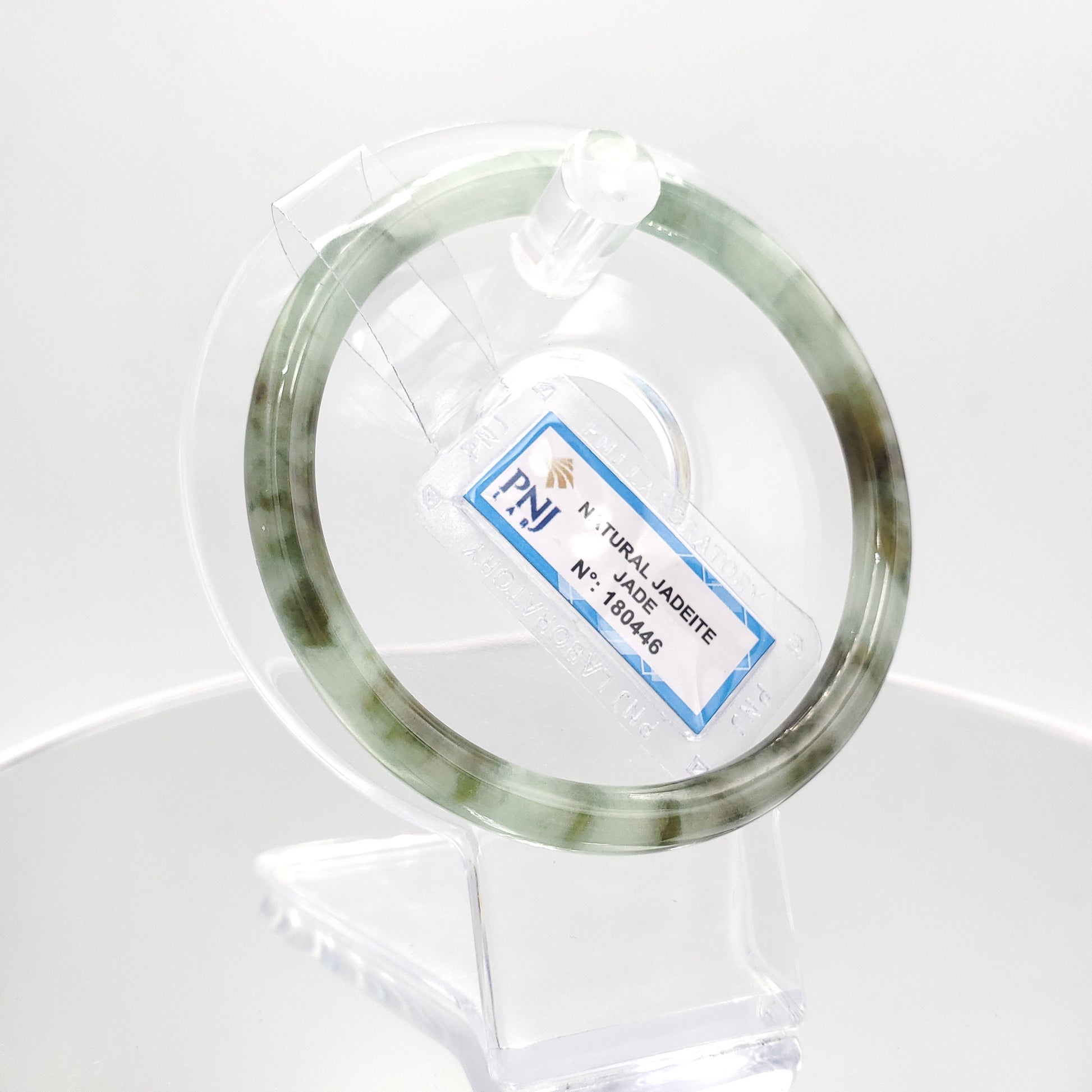 Yingmart 60mm PNJ180446 Certified Natural Light green, grey white, black brown spots jadeite jade bangle, Real Gemstone Bracelet,Vintage