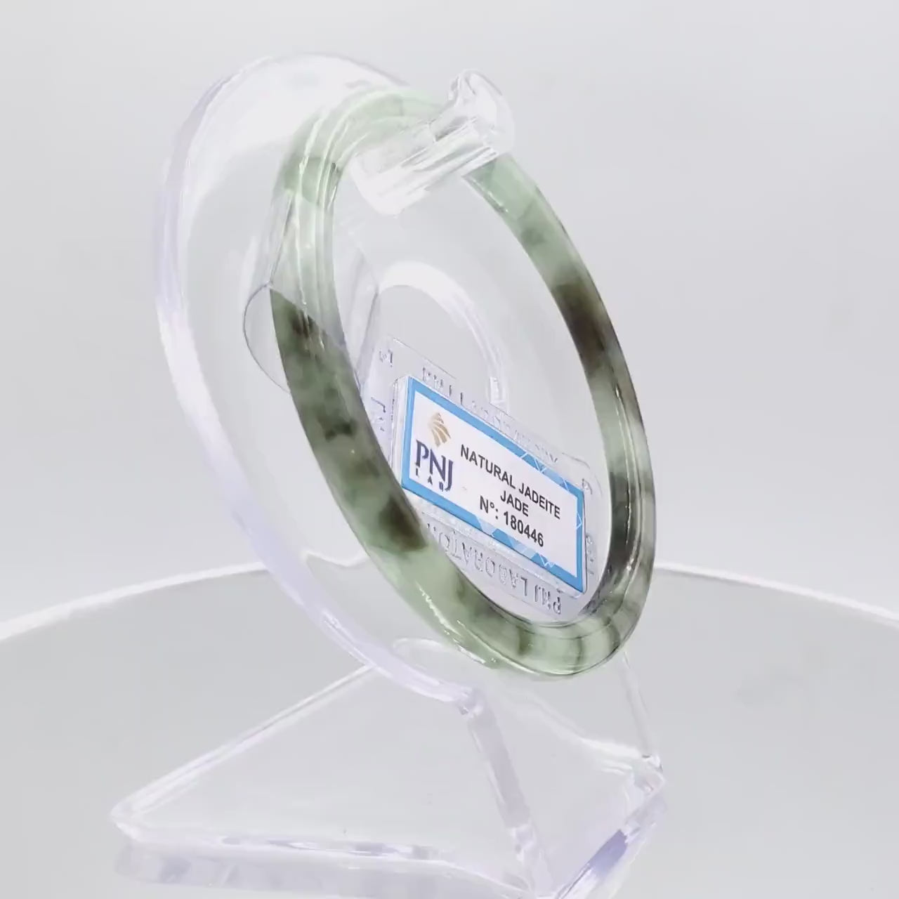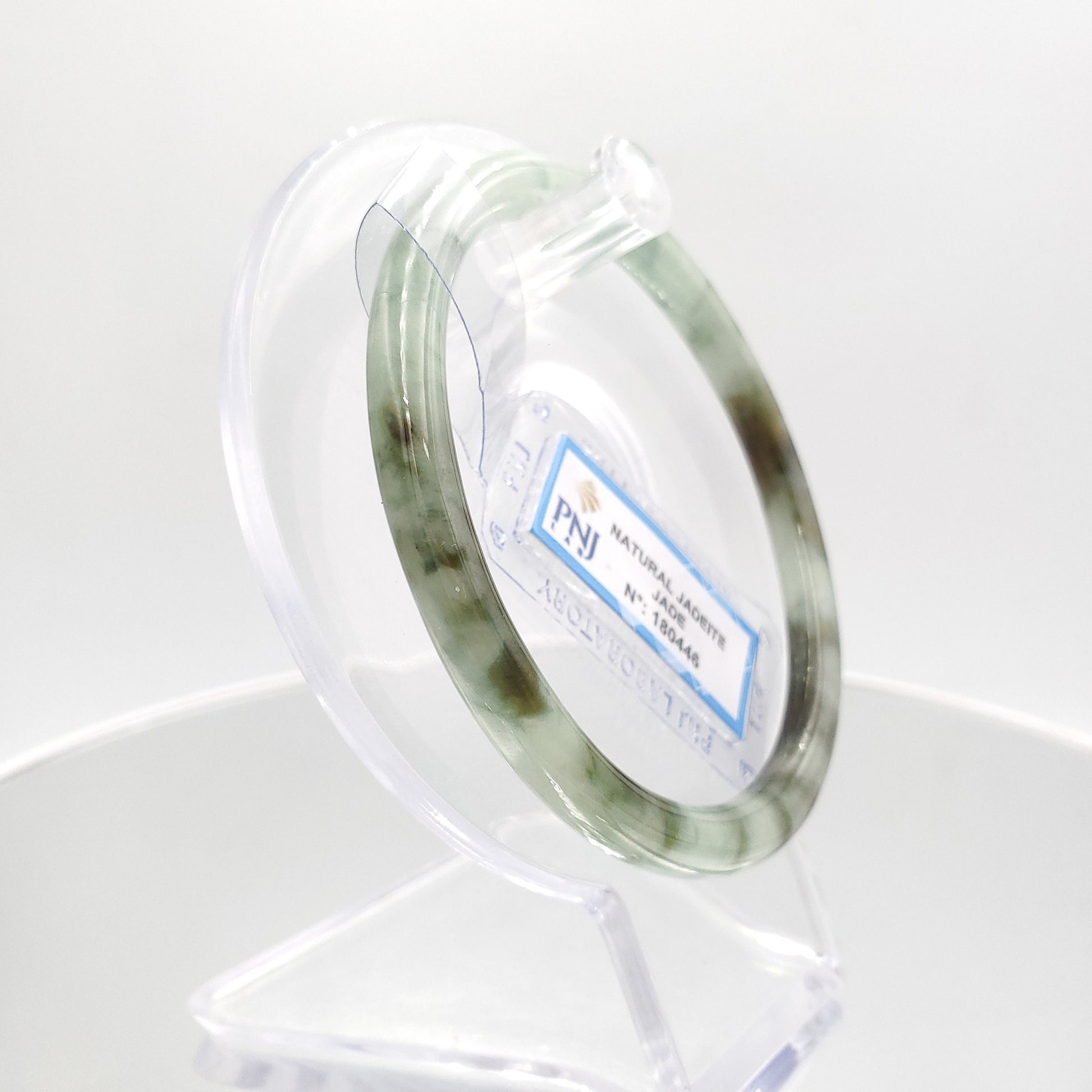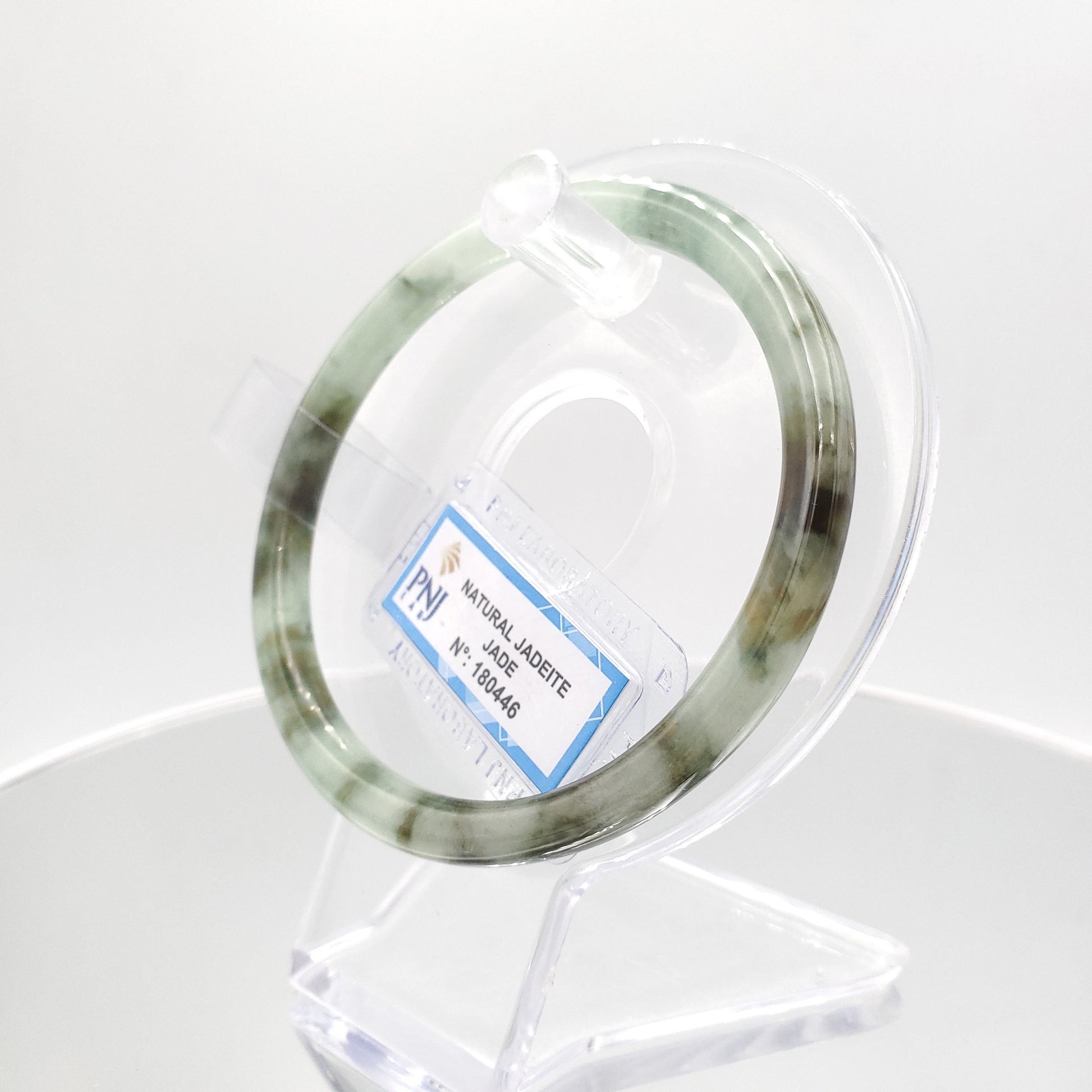 Yingmart 60mm PNJ180446 Certified Natural Light green, grey white, black brown spots jadeite jade bangle, Real Gemstone Bracelet,Vintage
