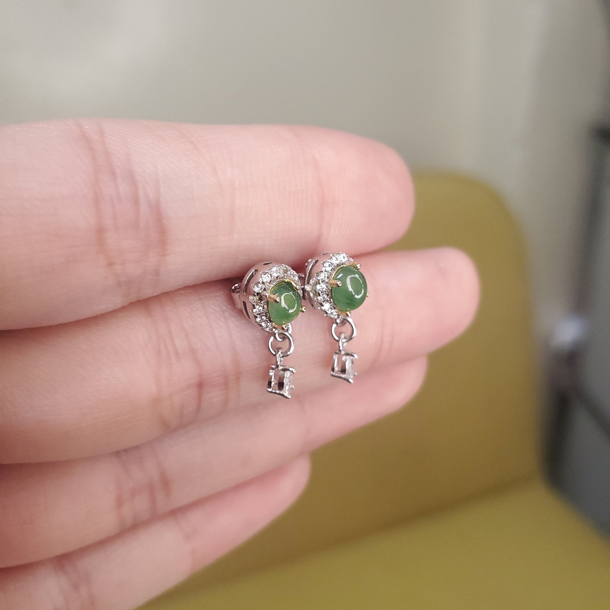 S925 Sterling Silver Earrings attached with the finest-quality jadeite— rare, vivid, sleek, and translucent, magnificent jadeite with a vibrant emerald-green color—is known as "Imperial jade."
