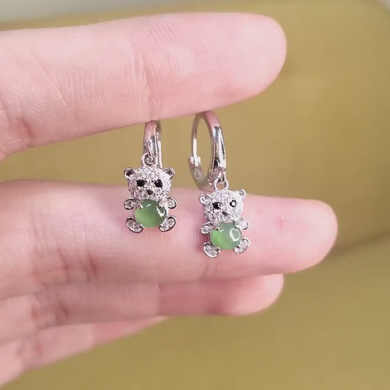 Yingmart Certified Genuine Icy Green Burmese Type A Jadeite Jade Gemstone Earrings Made With 925 Sterling Silver earrings, Gift for Women