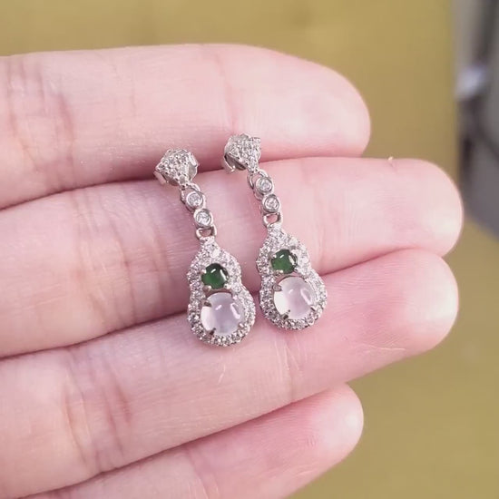 Yingmart certified genuine icy Green & White burmese type a jadeite jade gemstone earrings made with S925 silver earrings, gift for women