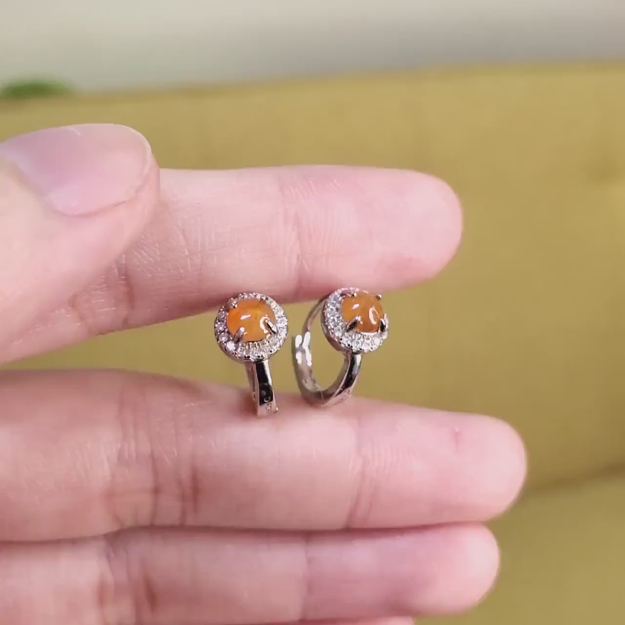 Yingmart certified genuine icy Orange burmese type a jadeite jade gemstone earrings made with 925 sterling silver earrings, gift for women