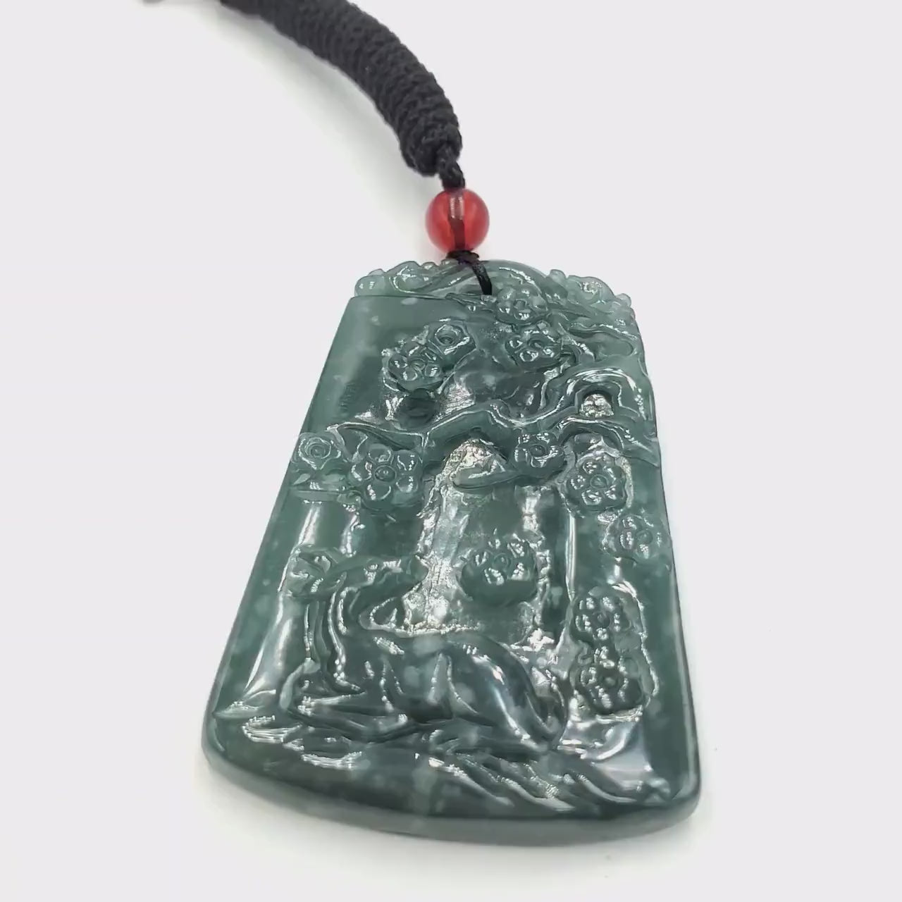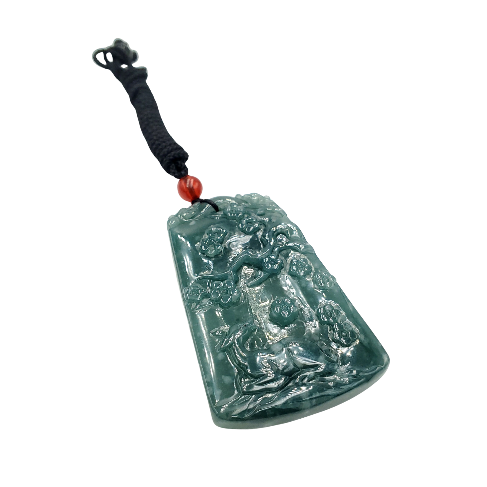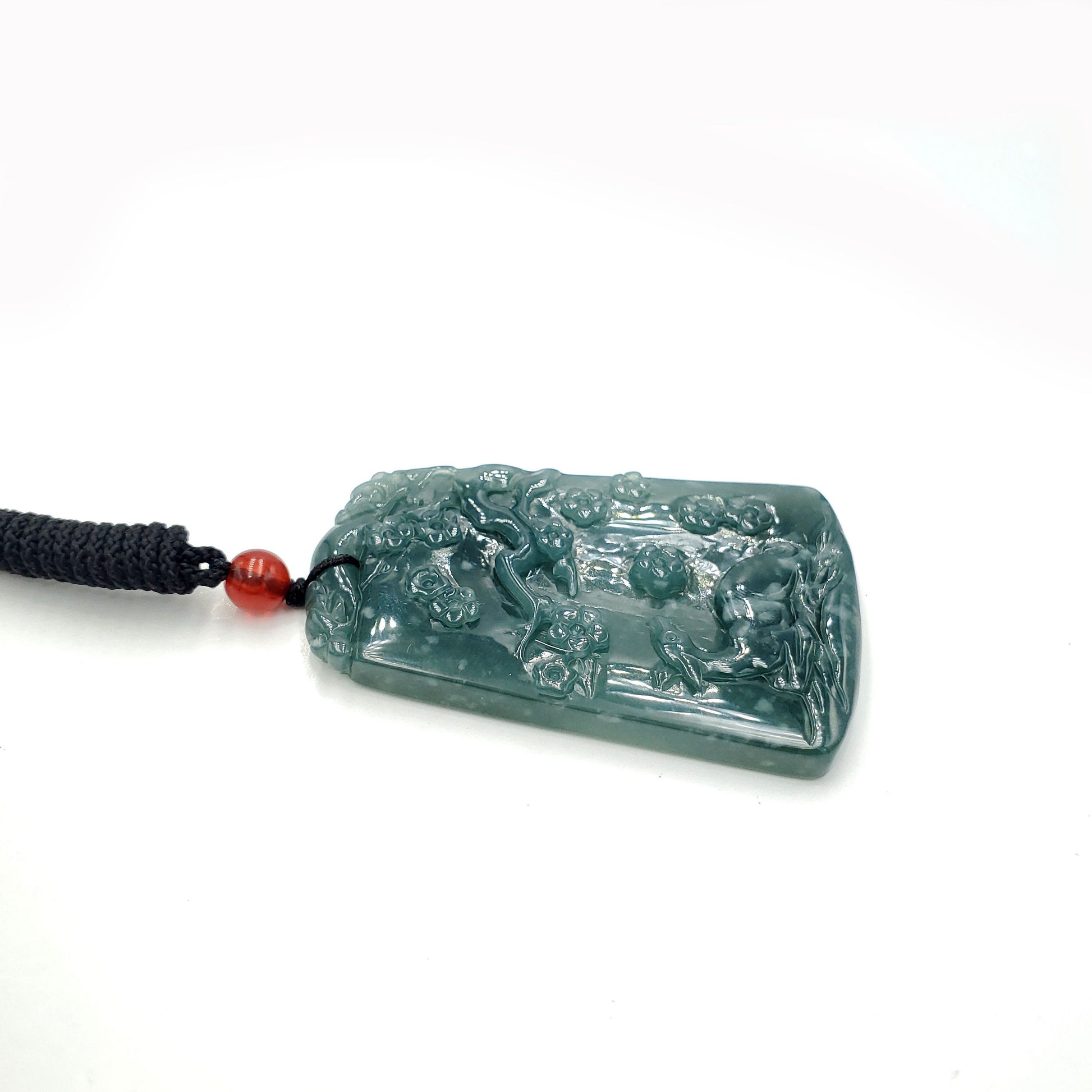 🎁 Dark Blue natural Jade stone Charm Carved Pendant Necklace,  Jade Keychain,Good Luck Keychain, Protection, Good Fortune Keychain
