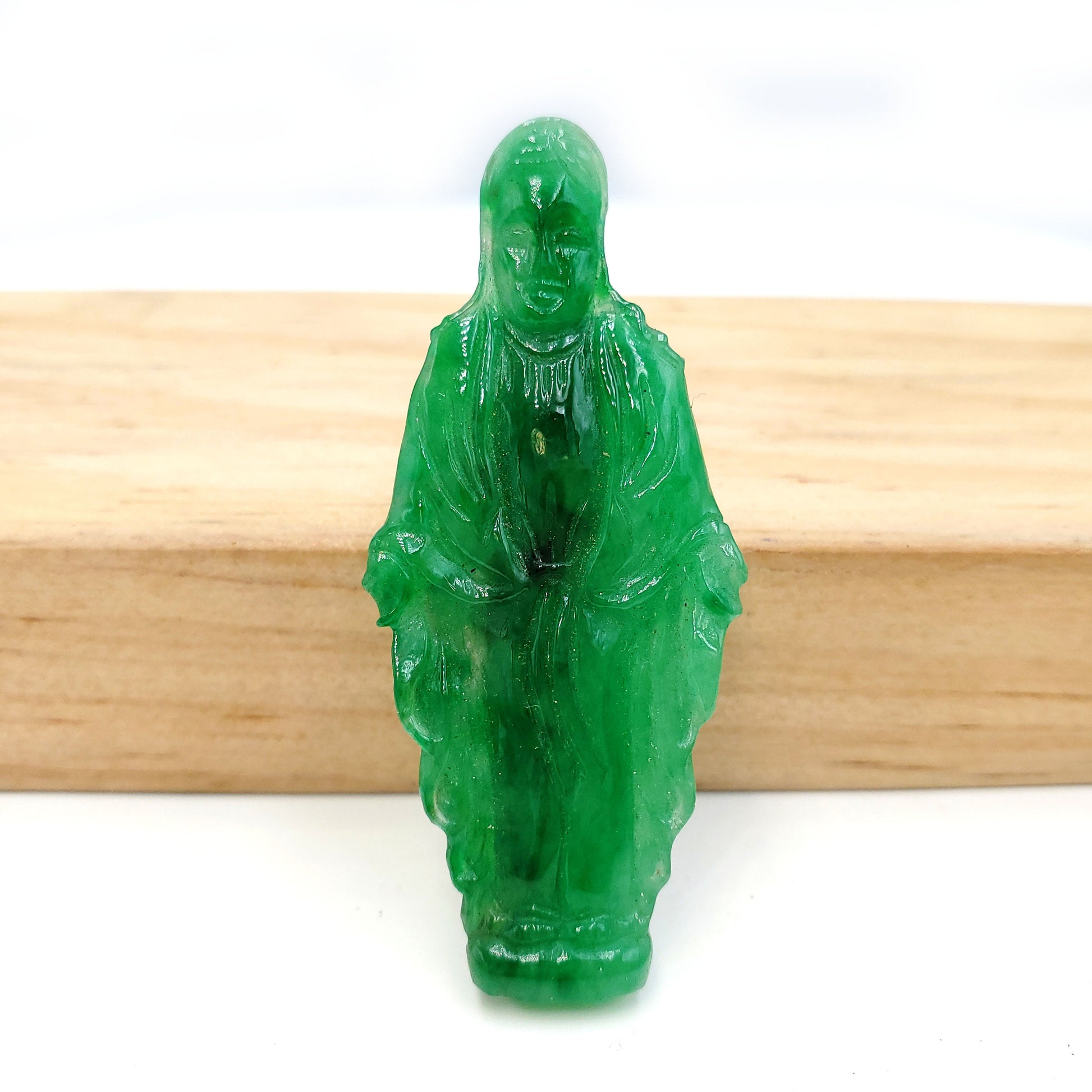 Yingmart Green Natural Jade Stone Carved Statue of Blessed Mother Jadeite, Protection, Good Luck