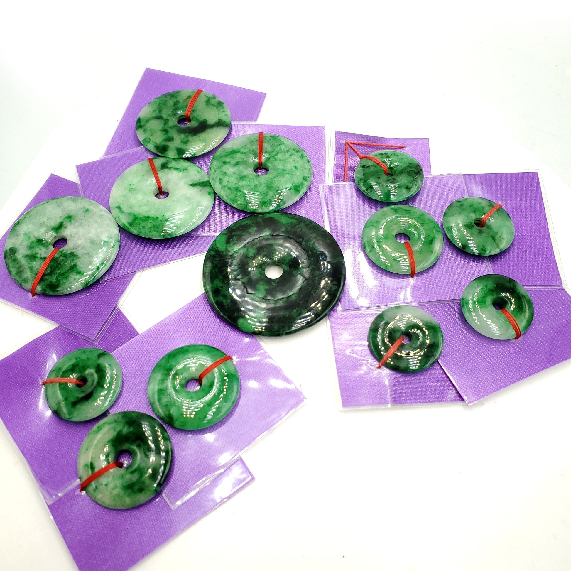 Yingmart Green natural Jade stone Charm carved Donut Jadeite Pendant Pendant Necklace, Good Luck Pendant, Protection
