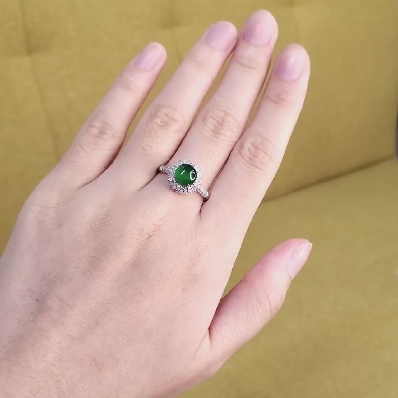 Yingmart luxury 18k white gold green vivid icy burmese jadeite jade a gems with 3 layers real diamonds side stone , gift fo her, vintage