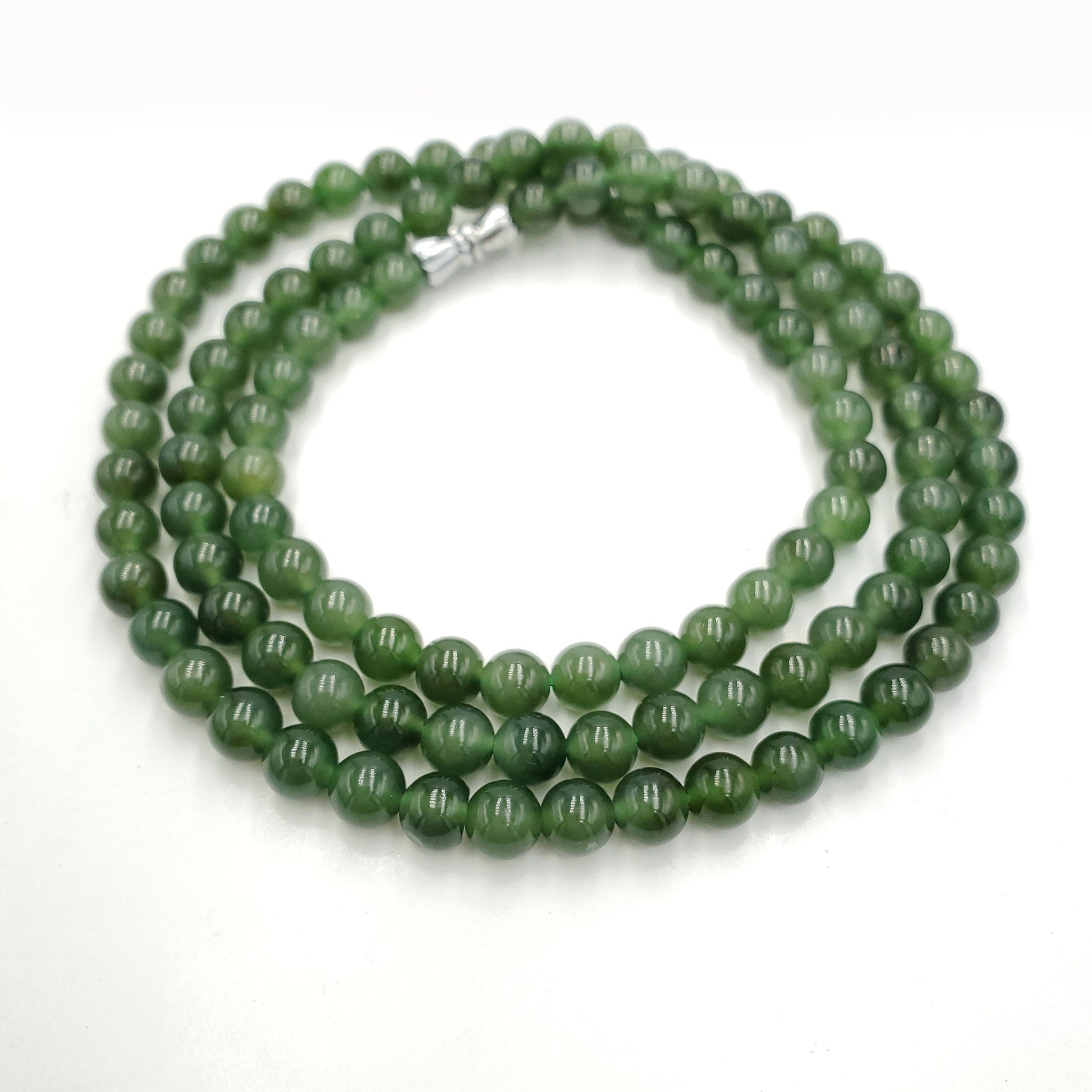 Yingmart Natural Nephrite Jade stone bracelet necklace , Untreated Black bead bracelet, Vintage Jewelry